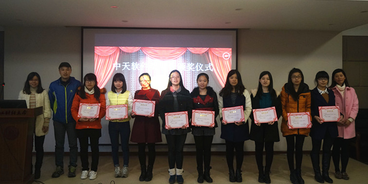“中天软件”奖学金评比办法(试行)》,共有37名同学入围本次现场评审。本次现场评审37名候选学生根据抽签顺序以生动的学习、生活经历及感人励志故事,通过精彩的演讲,结合精美的PPT、电子书及视频展示、分享了自己在学习、科研、竞赛、服务等多方面的优秀表现,同学们精彩的分享深刻的感染了现场的师生。最终,按照课程分加实践分占70%,面试成绩占30%分别决出了杰出奖获得者,分别是密雅琪、刘杰、洪雅虹、王江婷、马倩楠等5名同学,以及优秀奖获得者,分别是为袁慧莉、汪琳璐、章碧瑶、陈丁玲、虞晶、王月萍、王钰、徐惠惠、杨宁、侯永娇等10名同学。