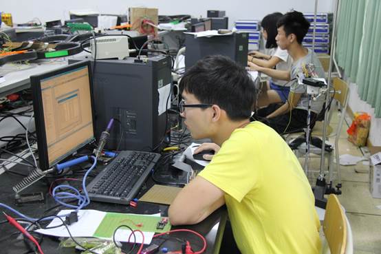 图1-4 参赛选手在认真调试竞赛作品