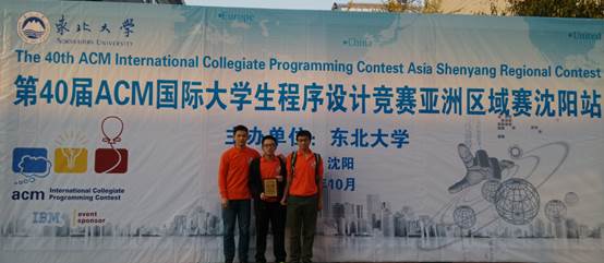 10月24-25日,第40届ACM国际大学生程序设计竞赛(ACM-ICPC)亚洲区域赛沈阳站在东北大学落下帷幕。由12软件陈铭洲、13计算机陈海杰和13软件厉伟键组成的团队在5个小时的比赛中依靠扎实的专业水平,良好的团队协作和心理素质,发挥出色,最终赢得比赛的金奖,这是棋牌 APP