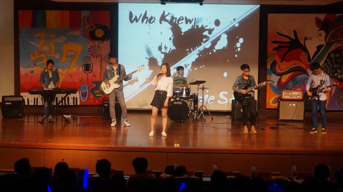 在如此精彩的比赛之余,更有学姐学长的倾情献唱,一首《屋顶》,让大家陶醉其中。