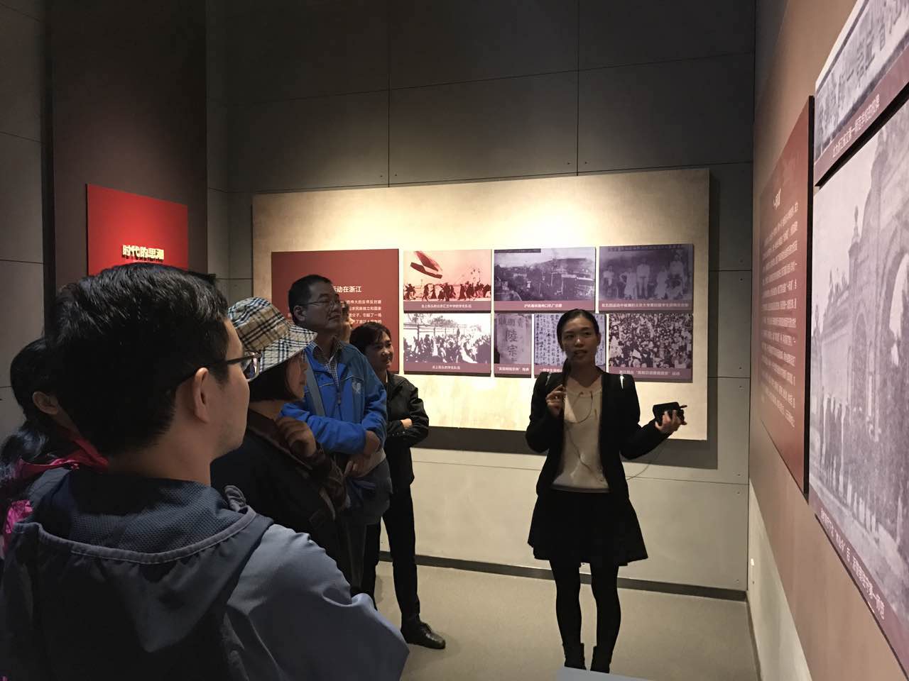 衙前农民运动纪念馆位于萧山衙前镇,有着悠久的历史文化和光荣的革命传统。1921年9月爆发的衙前农民运动,是中国共产党成立后领导的第一次有组织有纲领的农民运动,由中国共产党早期党员沈定一领导,被称为“全国农民运动的历史上最先发轫者”。纪念馆以农民运动为主题,结合“五四运动和今日衙前的繁荣发展,以百余副历史照片,文物展品和大量的图片,再现了我党领导的最早农民运动的过程。纪念馆的讲解员为我们详细讲解了衙前农民运动始末,参观的老师们深切感受到革命先驱工作之艰辛及早期革命运动之不易,大家纷纷感慨应该珍惜革命先辈们为我们开创的幸福生活并为更和谐美好的未来而努力奋斗。