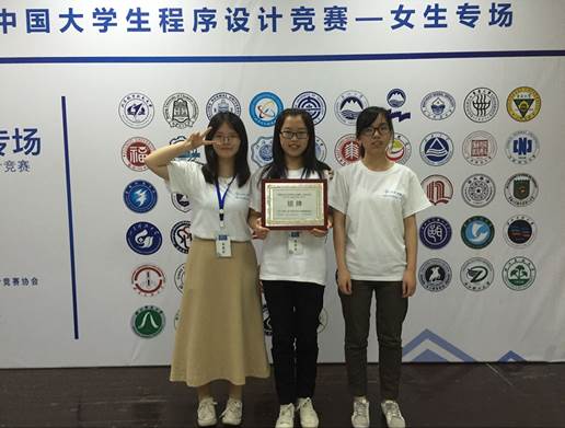 在程序设计竞赛中,女生也并不少见。15信息专业的朱怡阳学姐是ACM协会的会长,也是今年省赛的银牌得主。会长大一在周甄陶学长的介绍下知道了ACM,并在张帅老师的鼓励下与15计算机的王子雯一起参加ACM集训,从此与ACM结下了不解之缘。在ACM集训队里,会长遇到了一群志同道合的朋友,这其中就有“余神”。15国贸专业的余晓婷从小学就对计算机很有兴趣,即使自己在国贸专业,还是参加了ACM集训队。因为余晓婷的编程能力很强,所以会长一直叫她“余神”。在集训队的女生们不仅深入学习的专业知识,也收获了很好的友情。