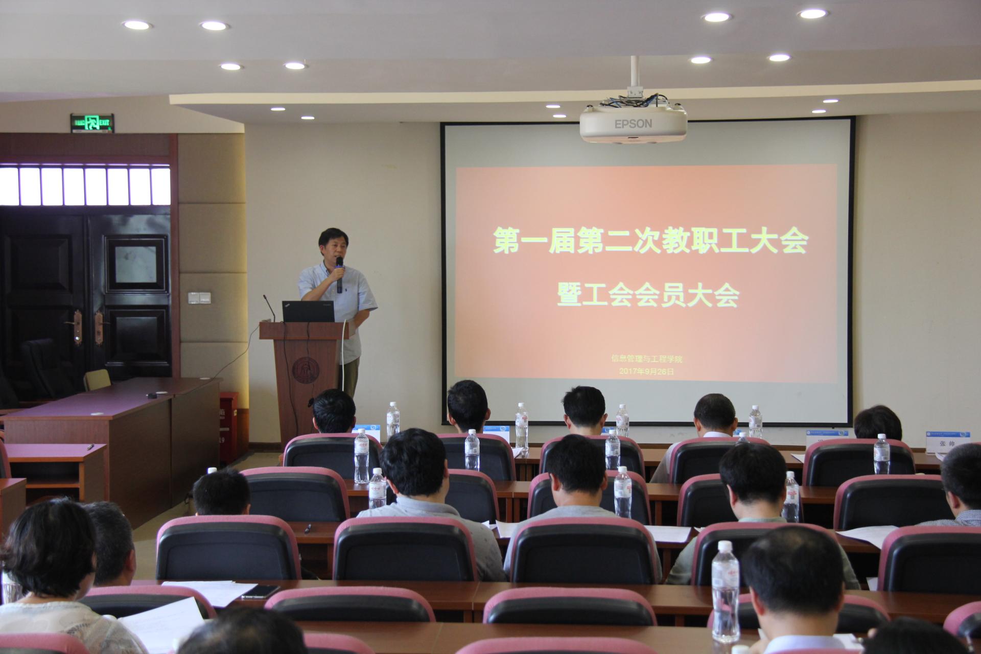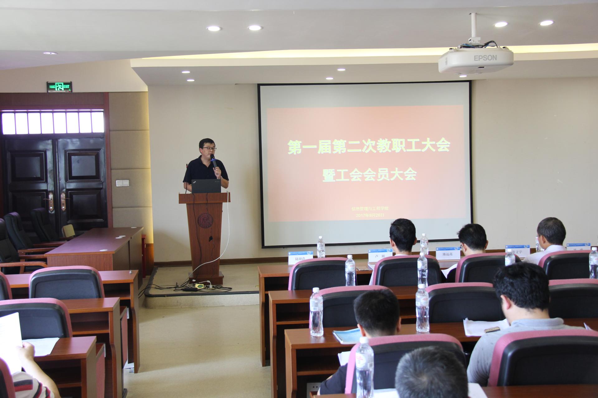全体教职工在9302报告厅召开了第一届第二次教职工大会暨工会会员大会,会议由棋牌 APP