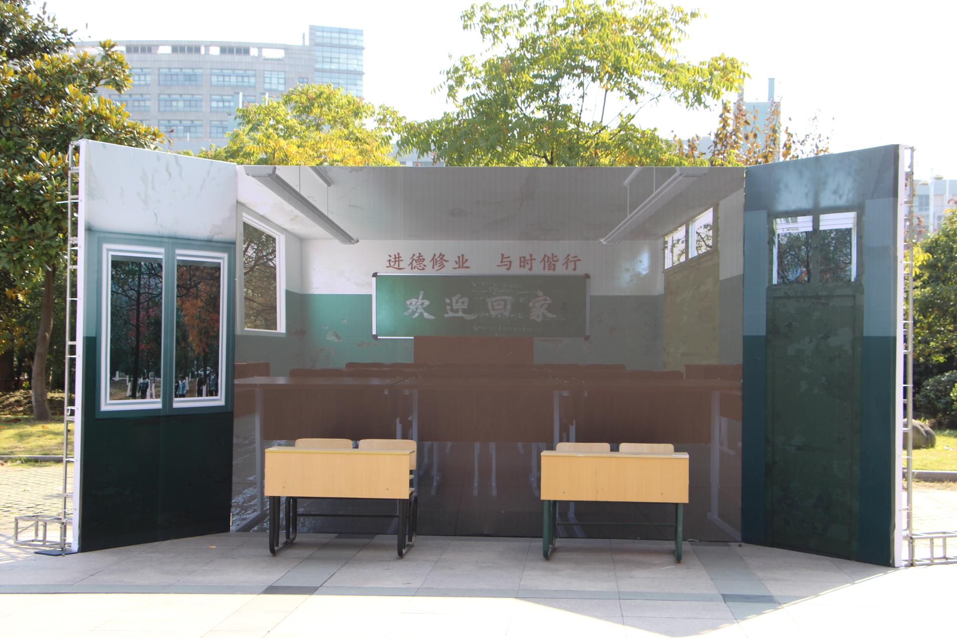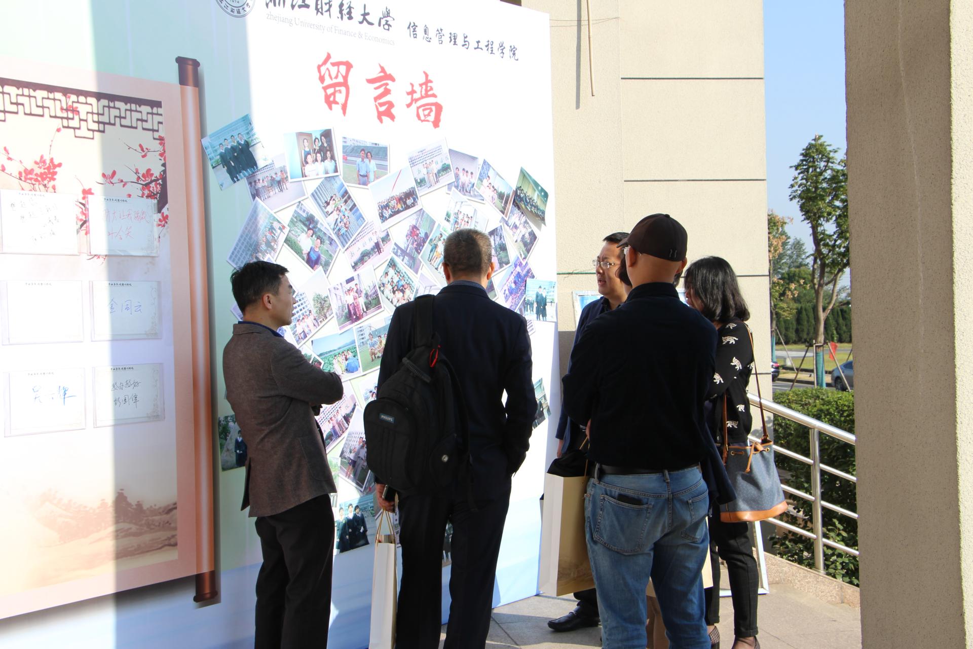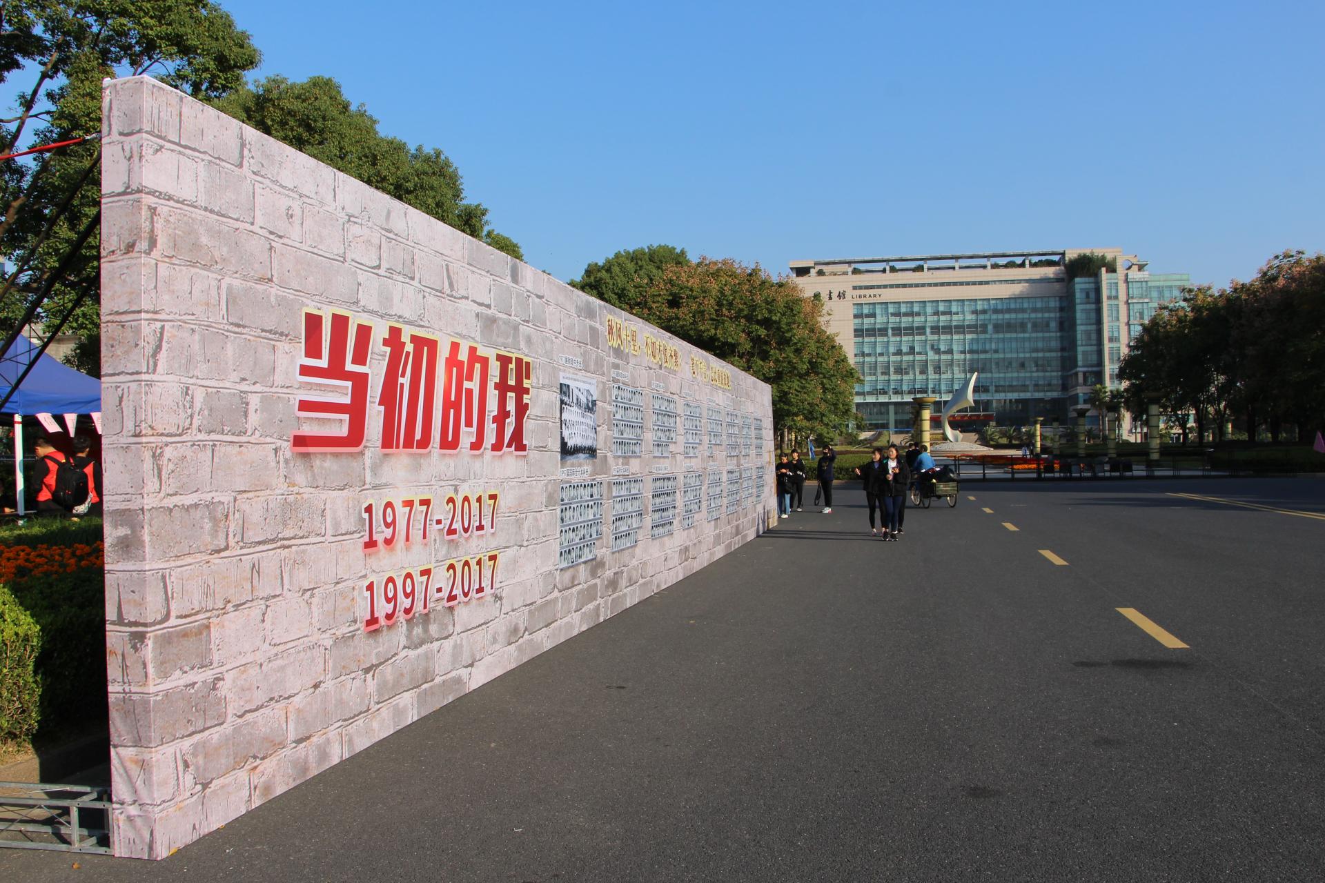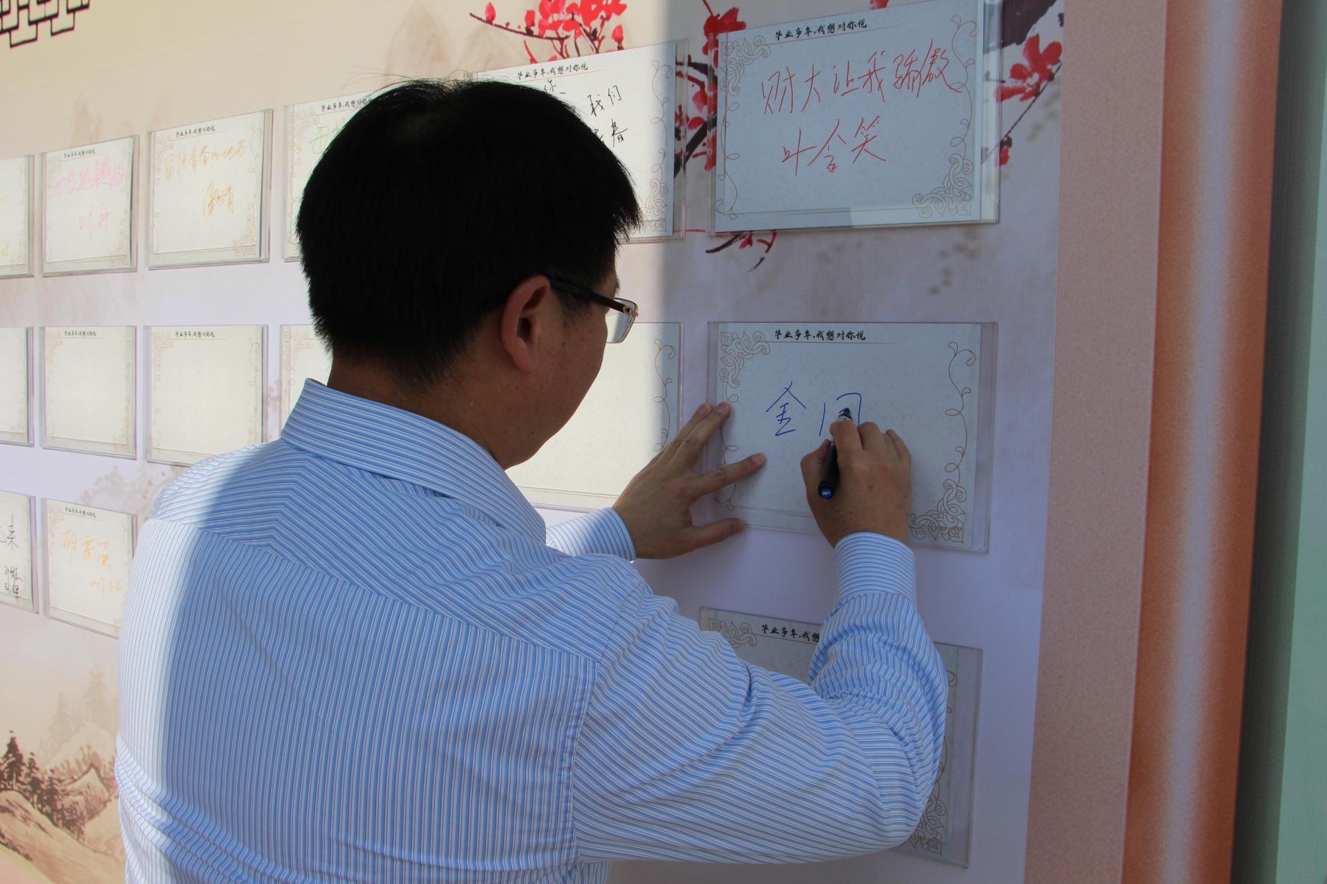 寻找所有过去的老照片,拼凑成一面留影墙,更是一面回忆墙,校友们不禁寻找仔细寻找当年的自己,“你看呀,你怎么一点都没变。”留影墙前有沉思,有激动拥抱,有泪花含在眼眶里。留影墙旁设有“毕业多年,我想对你说……”校友签名留言墙,其上各种留言有签名、有对母校的祝福,有对自己的心情抒发,不一样的笔迹里带着同样的依依眷恋之情。