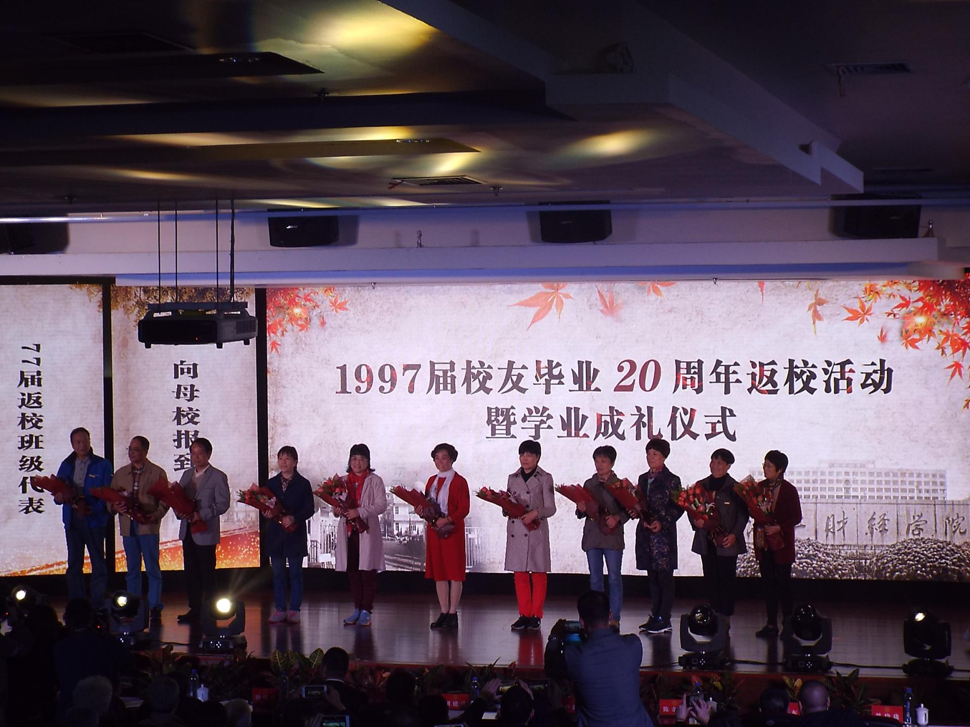 的各校友们纷纷前往学术一报,开始这时隔二十年的学业成礼仪式,“家常在,游子归,忆青葱,筑财大”,老教师们,校友们重逢故地,有无数的故事想要倾诉,返校班级代表满怀激动地“向母校报到”,无论现在是什么样的身份,如今大家坐在这里,共上一堂课,“你永远是我的同学,我一直是你的挚友”,每位身着学业成礼服的校友们经过最终的授证拨穗仪式,校领导为校友们正冠、拨穗,寄托着殷殷的期盼。