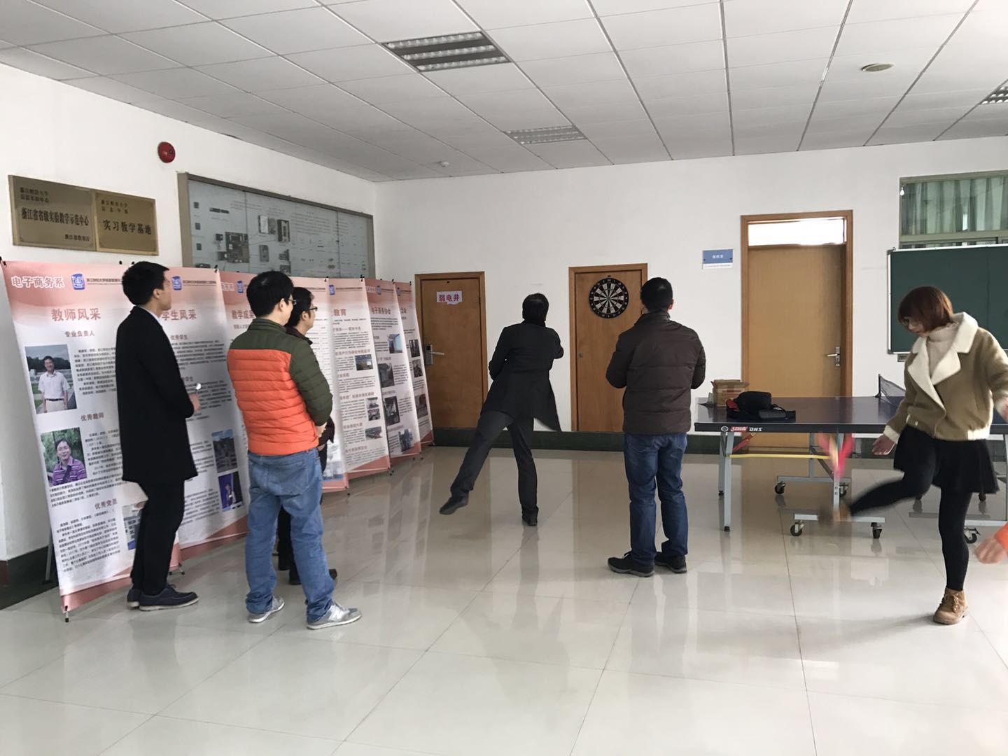 领导们与教师们纷纷上阵,参加各项活动。“巧搬气球”、“吸管运输”、“镖盘接力”等集趣味与技巧一体,需团队共同合作力,紧张激烈的趣味比赛,给节日增添了欢乐的气氛。通过游园活动,在欢声笑语中,在肢体协作中,在团结比拼中,团结、友谊、协作得以充分体现,老师们衷心祝愿新年好。