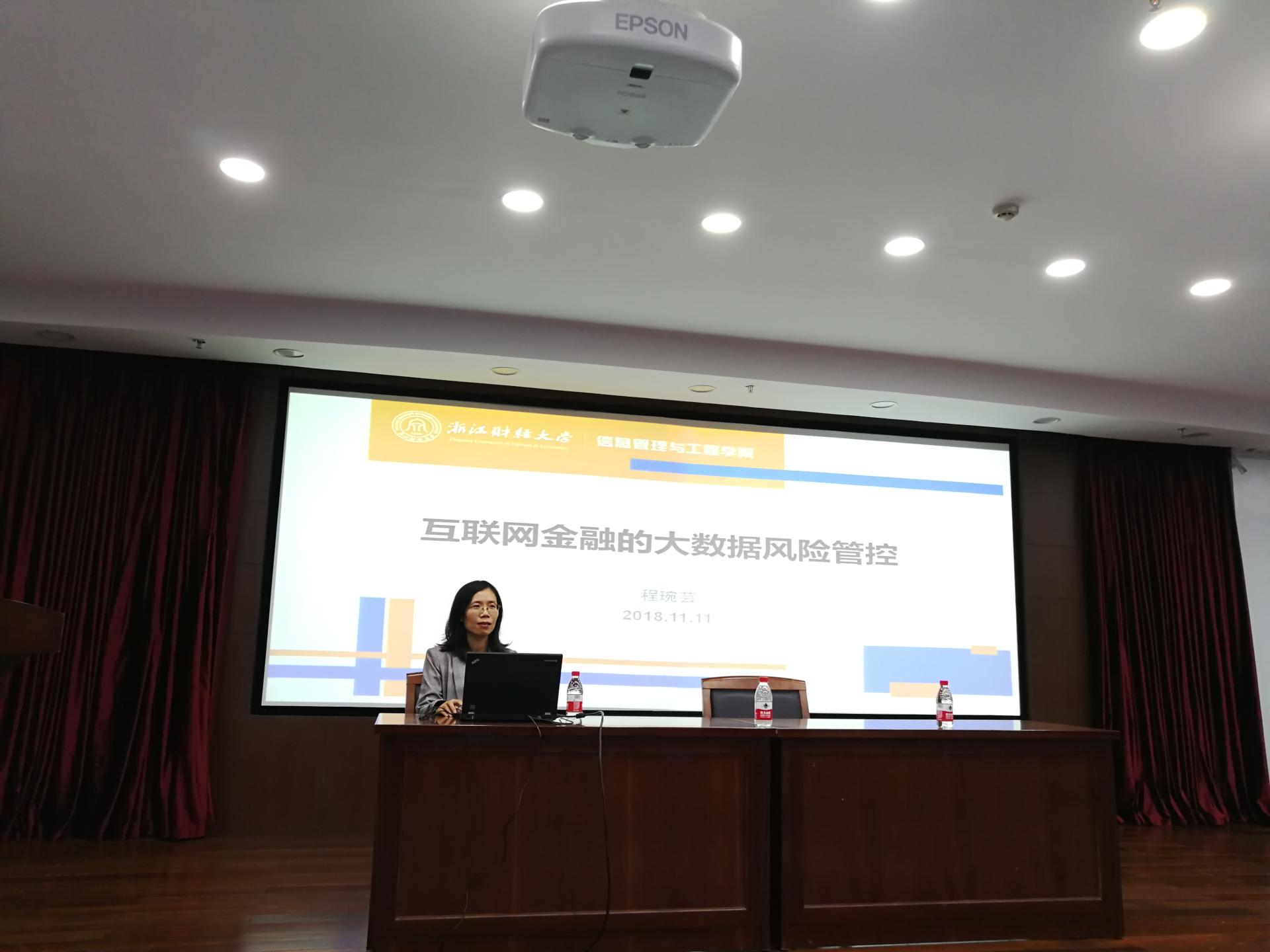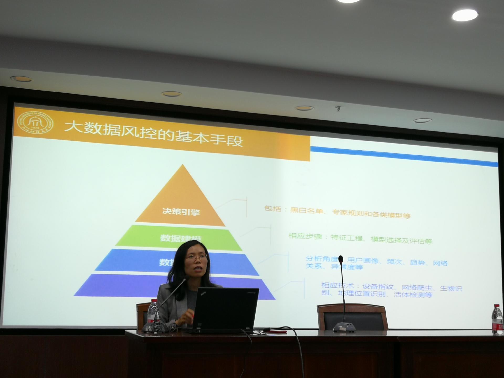 接下来由程琬芸博士进行关于互联网金融界的大数据风险管控的演讲。程博士首先为我们分享了她的个人经历,结合信息管理专业的课程设置,建议学生进行跨专业学习,扩大知识面。接着她为大家讲述了关于金融科技、风控行业相关信息以及一些人才需求方面的知识。最后分享了某银行价值预测模型和反欺诈模型这两个案例,在案例的分析中向大家介绍了其所需的技能及相应课程,为同学们将来的学业规划提供了非常有价值的参考和切实可行的发展目标。