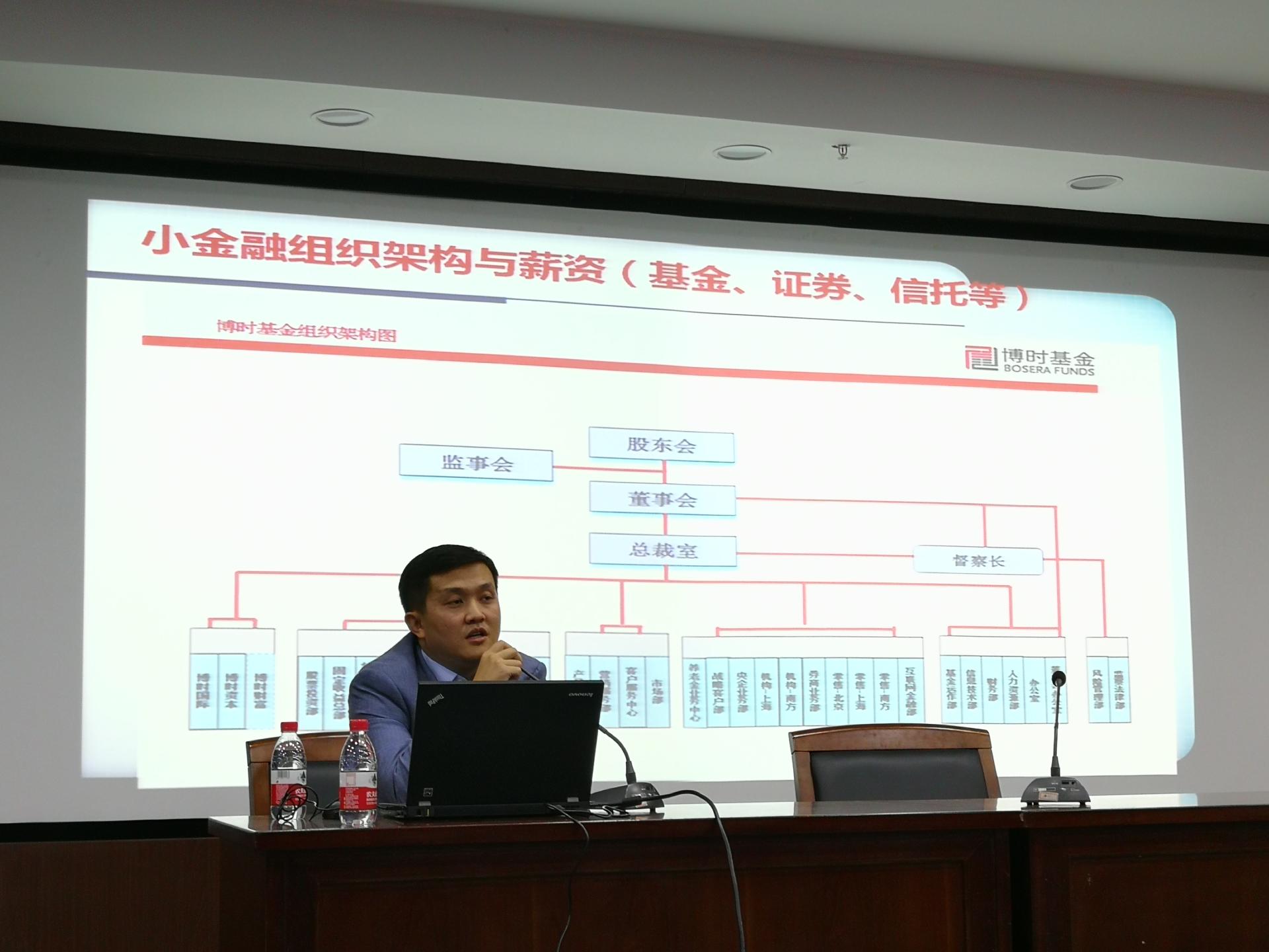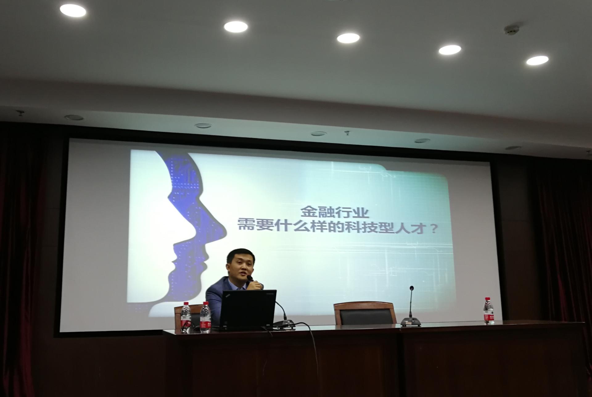 首先,梁邦龙博士进行了以金融行业需要什么样的科技型人才为主题的讲话。梁博士先为大家介绍大金融、小金融的组织架构与薪资特点,详细说明了适合信息技术类专业的部门与岗位薪资,提出“技术+金融=前途不可限量”,并从自身经历出发,强调了行业选择的重要性。接下来梁博士为大家简单介绍了data driver以及公司的业务、成功案例等,并向同学们提出期望:找准自身最合适的定位,结合金融行业发挥好自身科技优势,为社会做出最大贡献。最后,他还为大家解答了信息技术方面相关专业的困惑,建议同学们在对专业技能学有余力的基础上多参加社会活动,塑造良好的情商。