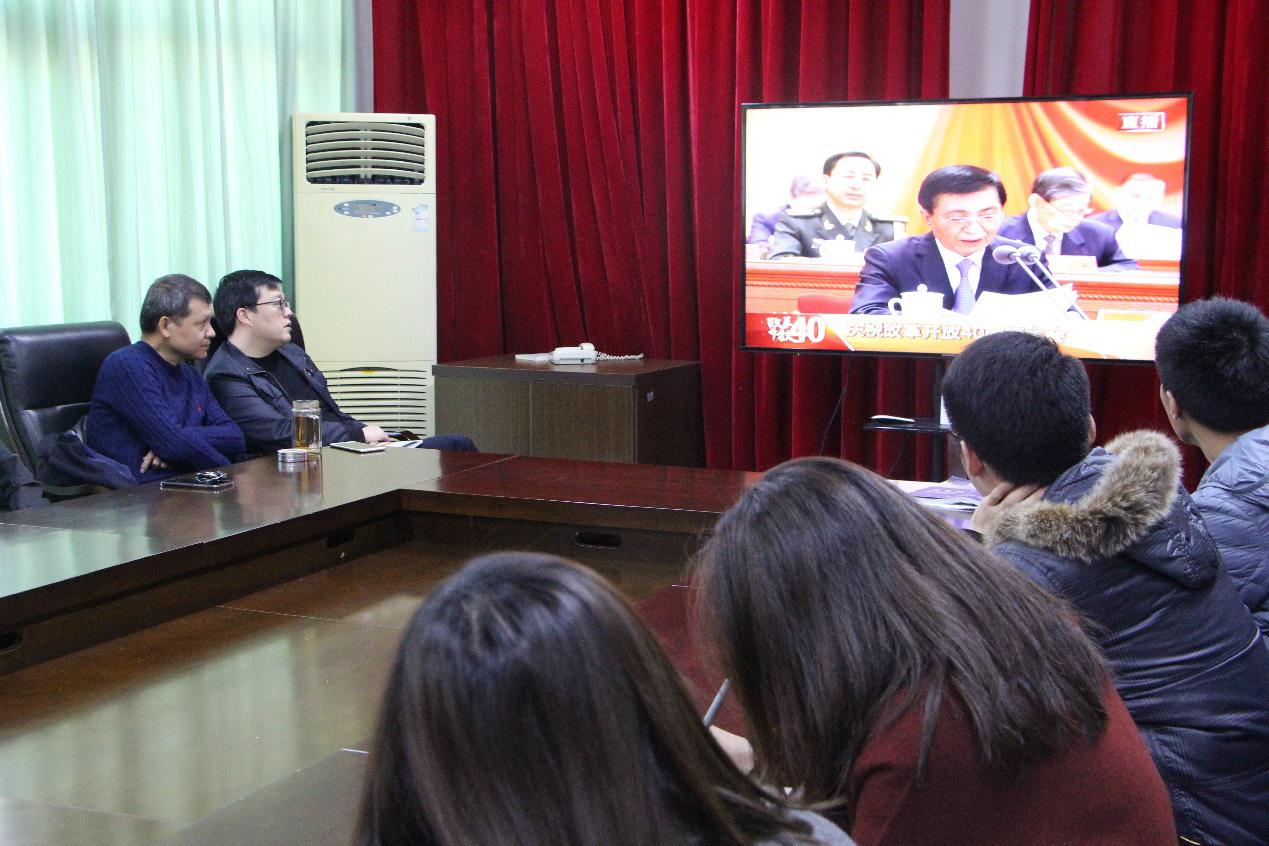 楼506会议室共同观看直播,举办了一场精彩的庆祝改革开放四十周年大会学习交流活动。