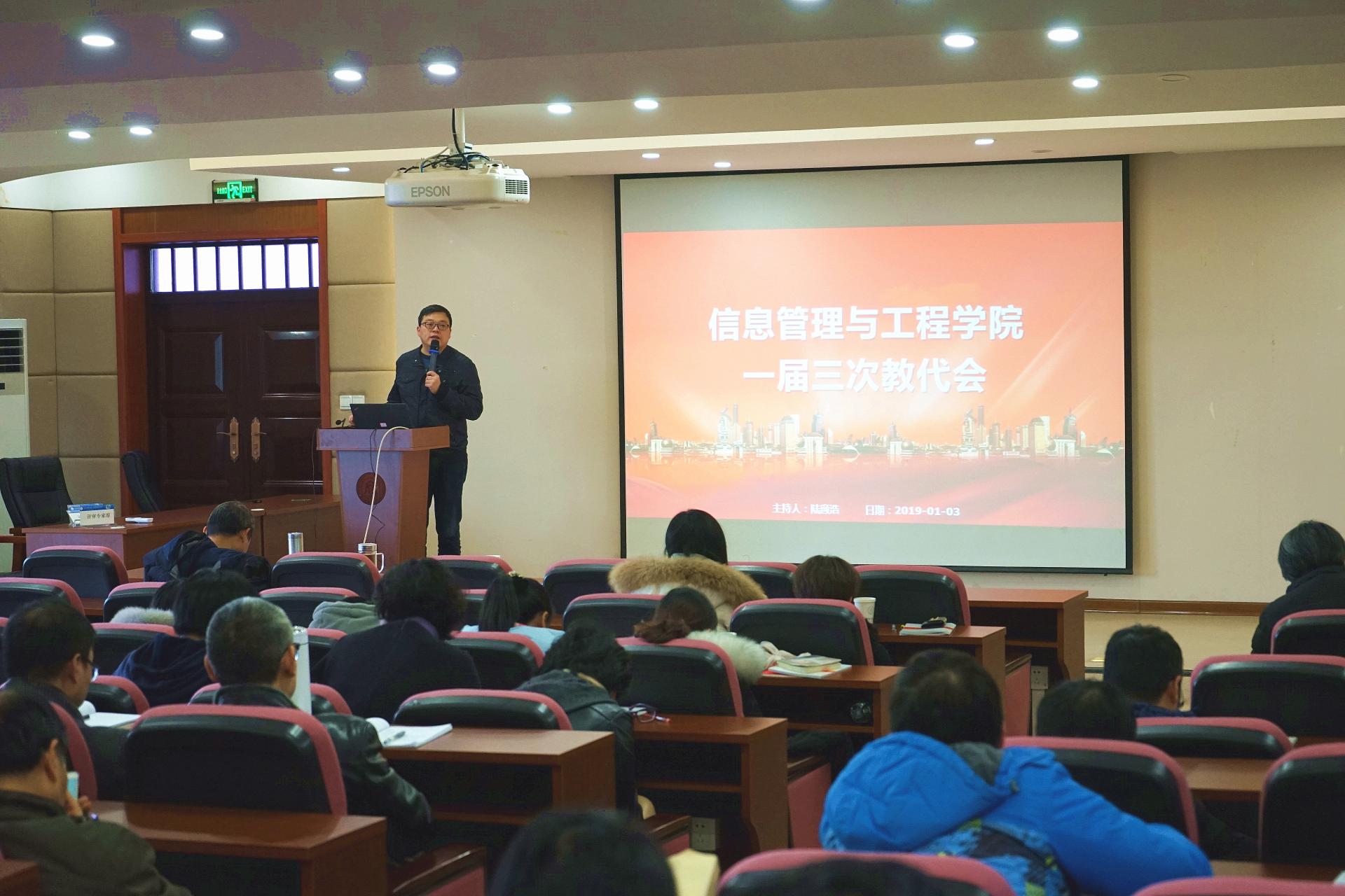 一届三次教代会由陆颋浩老师主持,由张文宇院长宣读了本年度院长工作报告和本年度财务工作报告,陆颋浩老师宣读了本年度工会财务工作报告,参会教职工鼓掌通过。