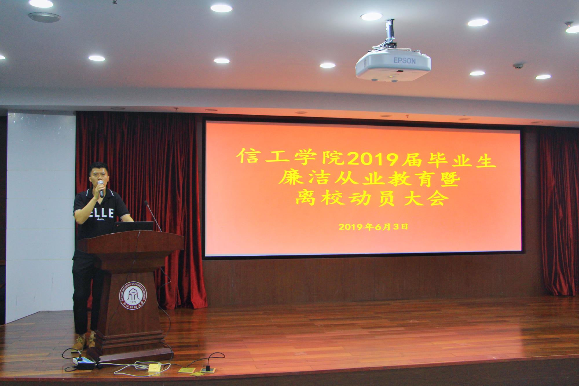 在学术四号报告厅举行2019届毕业生廉洁从业教育暨离校动员大会。出席本次大会的有棋牌 APP