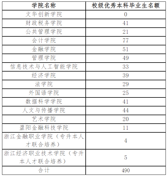 本科学生荣誉称号评审办法》(浙财大〔2025〕301号)文件要求,现就评选2026届校级优秀本科毕业生的有关事项通知如下: