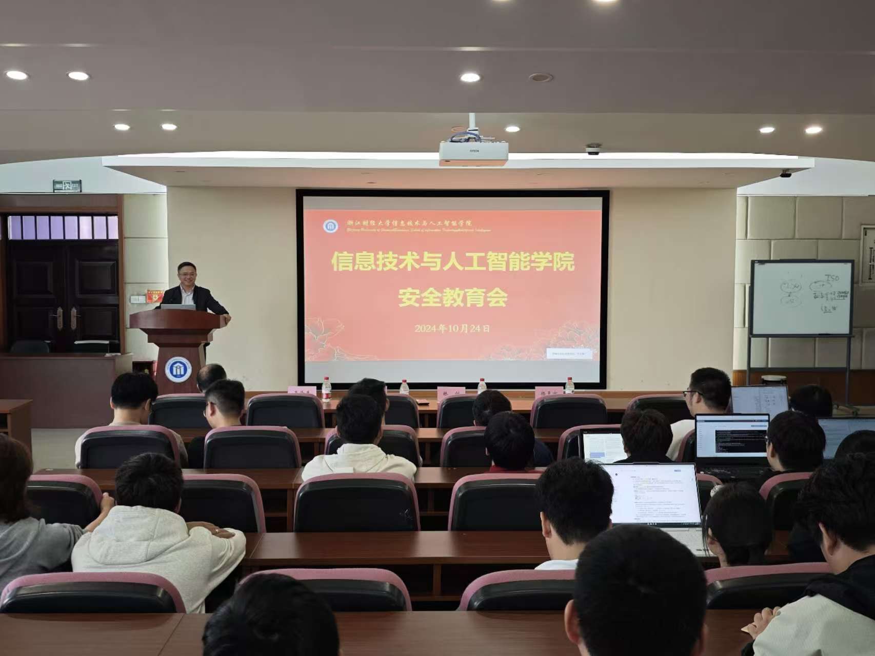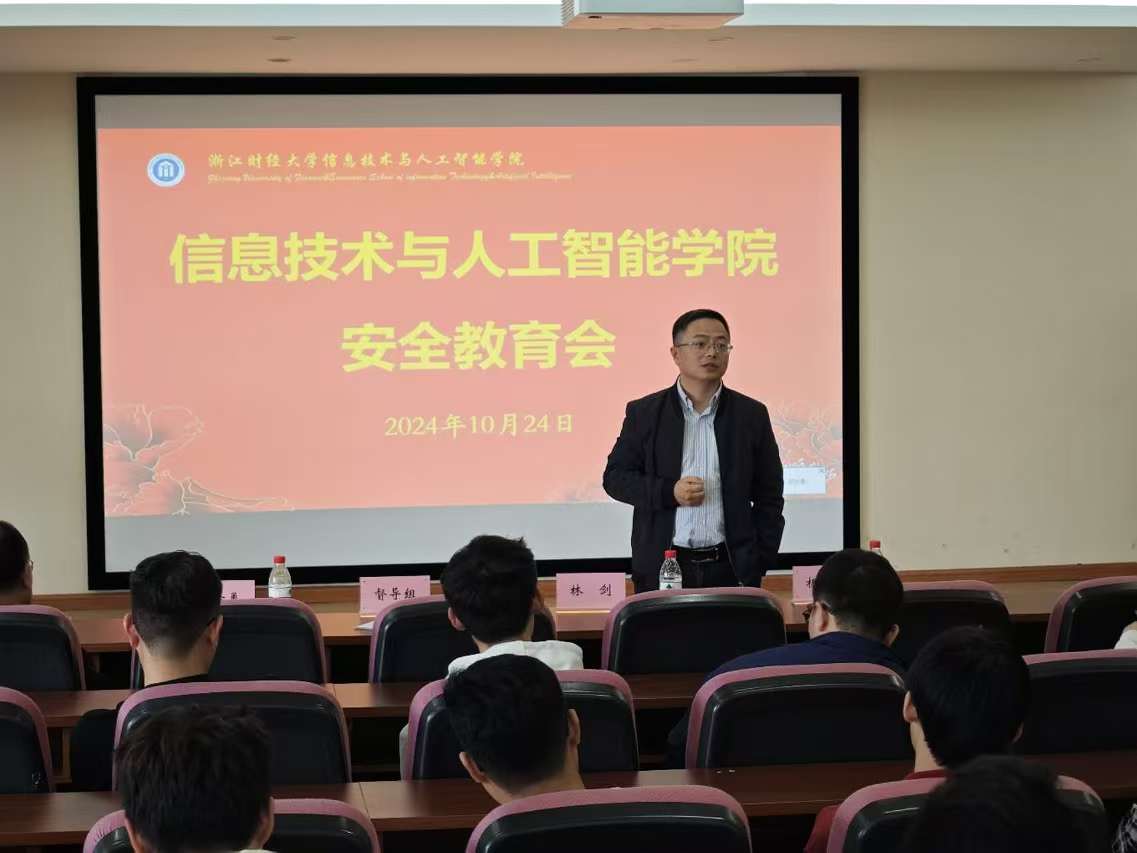 副院长林剑教授担任主讲人,研究生教学督导组姚建荣教授、研究生辅导员吴泽勇、研究生秘书杨天亦及2024级全体硕士生和博士生参加,本次讲座旨在提高学生的安全意识和自我保护能力。