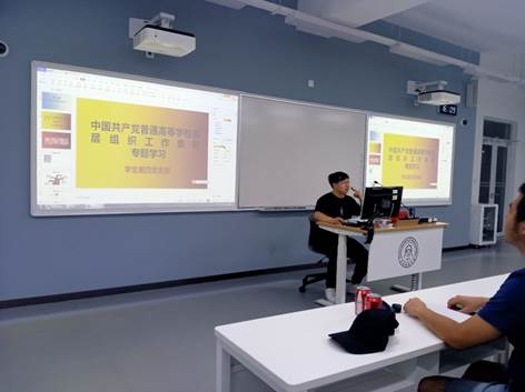 各教工党支部重点对《条例》关于高校开展思想政治工作的有关规定展开了讨论。《条例》强调要把立德树人作为根本任务,把理想信念教育放在首位,推动习近平新时代中国特色社会主义思想进教材、进课堂、进头脑,加强党的理论教育、党史教育、爱国主义教育,办好思想政治理论课,构建思想政治工作体系,加强意识形态阵地管理,形成全员全过程全方位育人工作机制等内容,丰富了大学生思想政治工作的内涵。借学习《条例》的机会,教工党员针对自身课程中思政教育部分的设计进行了交流分享,对传统思想政治工作和现代信息技术的融合进行了探究。