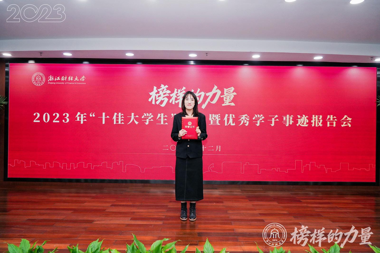 裘一蕾获评2023年“十佳大学生”,李甫俊获评2023年“十佳大学生”提名奖。