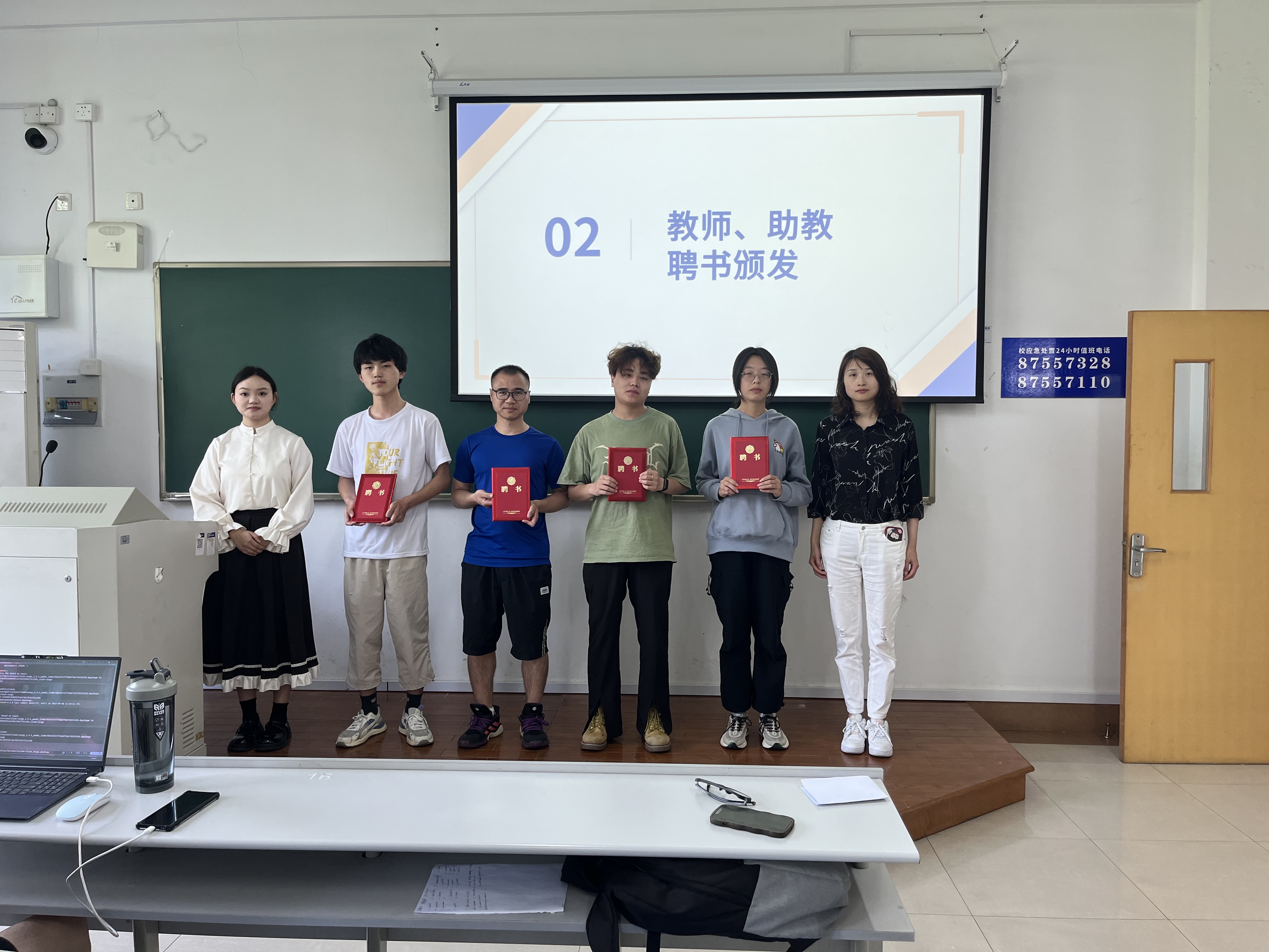史光花老师向同学们介绍了补习班的的学习计划、考勤要求、以及主讲老师、学生助教。吴轶韵副书记为任课老师和学生助教颁发了聘书。随后,本次补习班进行了分班和第一次课程授课。