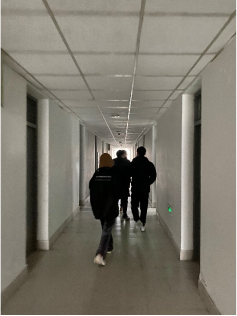 辅导员洪宝华、徐军军、马硕、赵梦瑶等老师带队走访园区与学生宿舍。