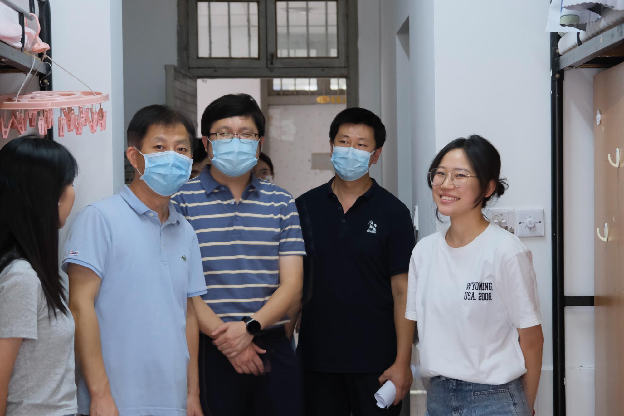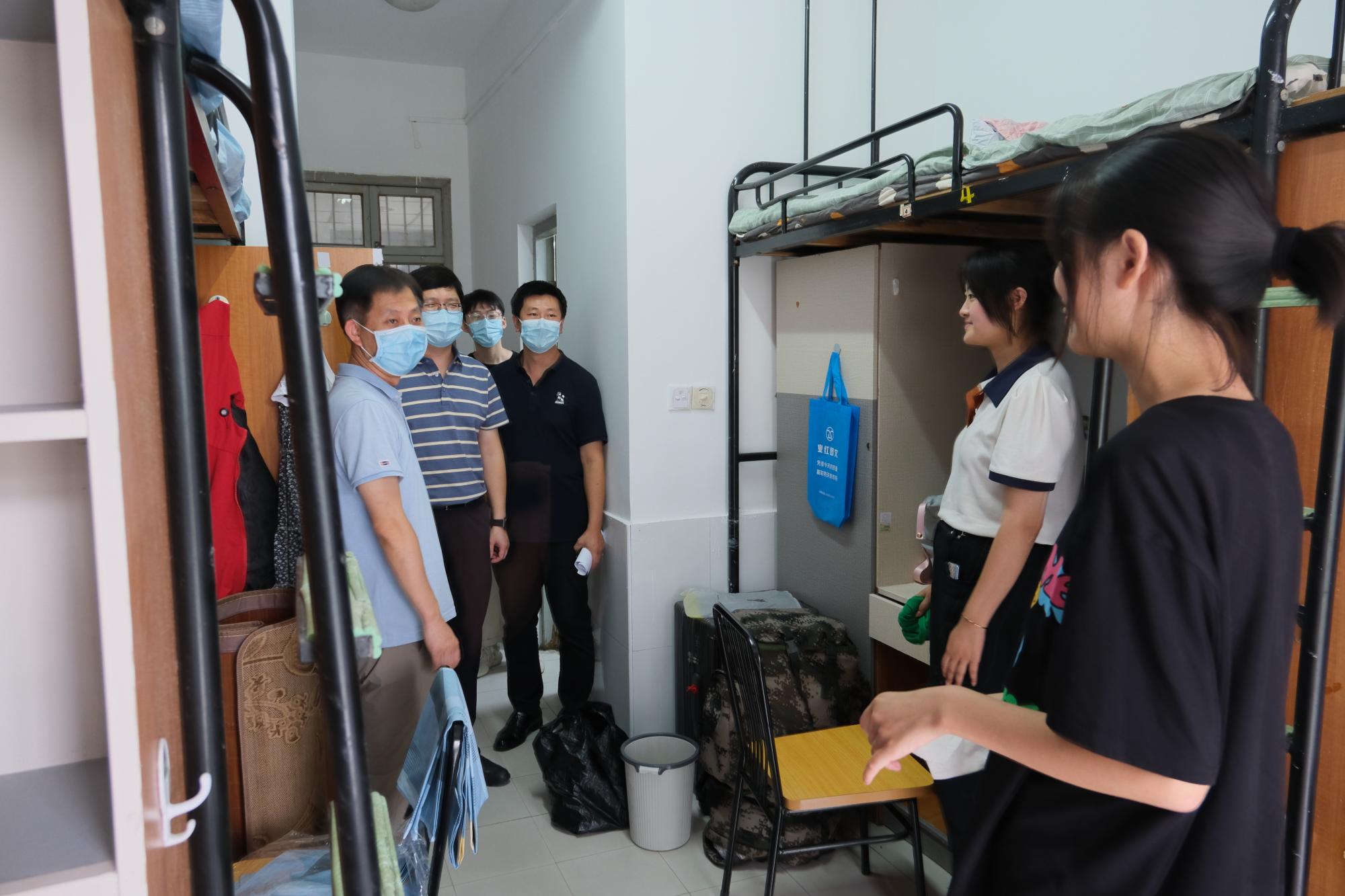 喜迎2022级本科新生入学报到。下午,为了解新生入住情况,强化新生安全意识,院长张帅、院党委书记徐奇伟、院党委副书记田聪、院团委书记毛立晨以及新生辅导员马硕共同走访了新生寝室,为刚刚加入棋牌 APP