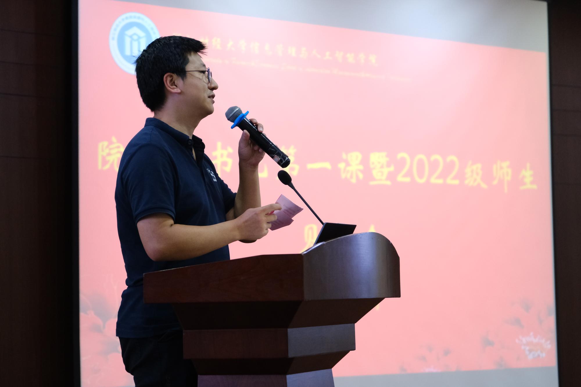 院长张帅、院党委书记徐奇伟、副院长陈远高、副院长隆清琦、院党委副书记田聪、信息管理与信息系统系主任刘维树、人工智能系主任陈琰宏、电子商务系主任陈明晶、软件工程系主任陈伟锋、院团委书记毛立晨以及新生辅导员马硕出席大会,全体2022级本科生参加。大会由院党委副书记田聪主持。