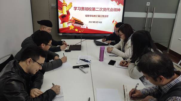 教工第三党支部全体党员,在上学期末以线上线下相结合的方式学习校第二次党代会精神的基础上,继续深入学习与贯彻落实校第二次党代会精神。