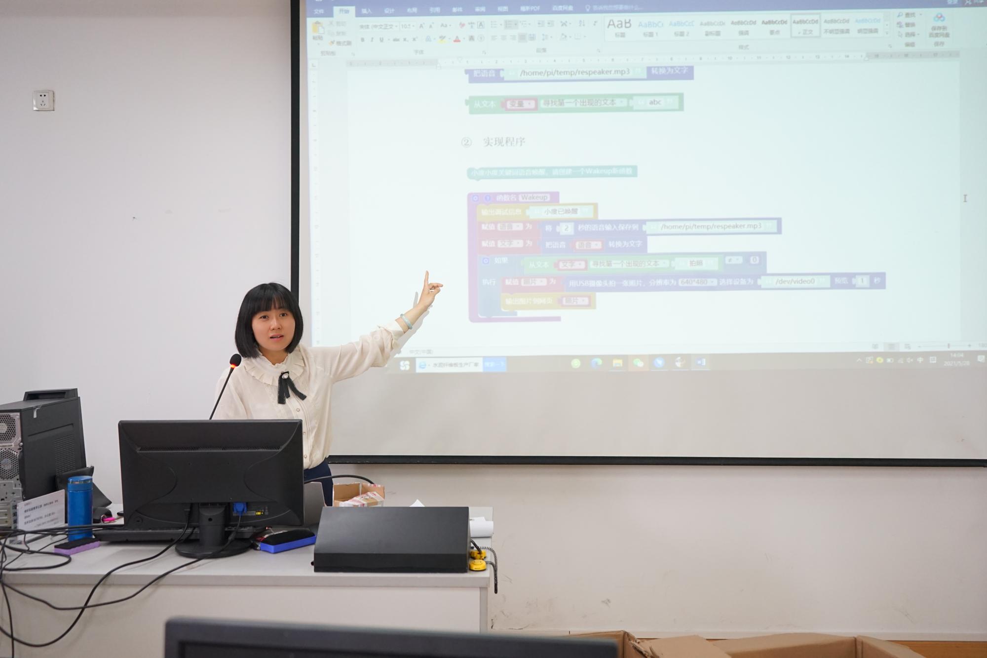 开展党史学习教育的契机,朱凌老师大胆尝试教学改革,制定创新教学方案,积极探索产学合作协同育人的人才培养新模式,在人工智能通识教育中将党史知识与专业知识技能融合,设计了一系列人脸识别、语音识别、文字识别、机器翻译、物联网控制、智能硬件等虚拟仿真实验教学案例,帮助学生们更形象更真切地体验人工智能时代中信息物理空间融合的程序设计在我们工作、学习、生活中的强大应用,也让党史教育以更接地气的方式走近学生。