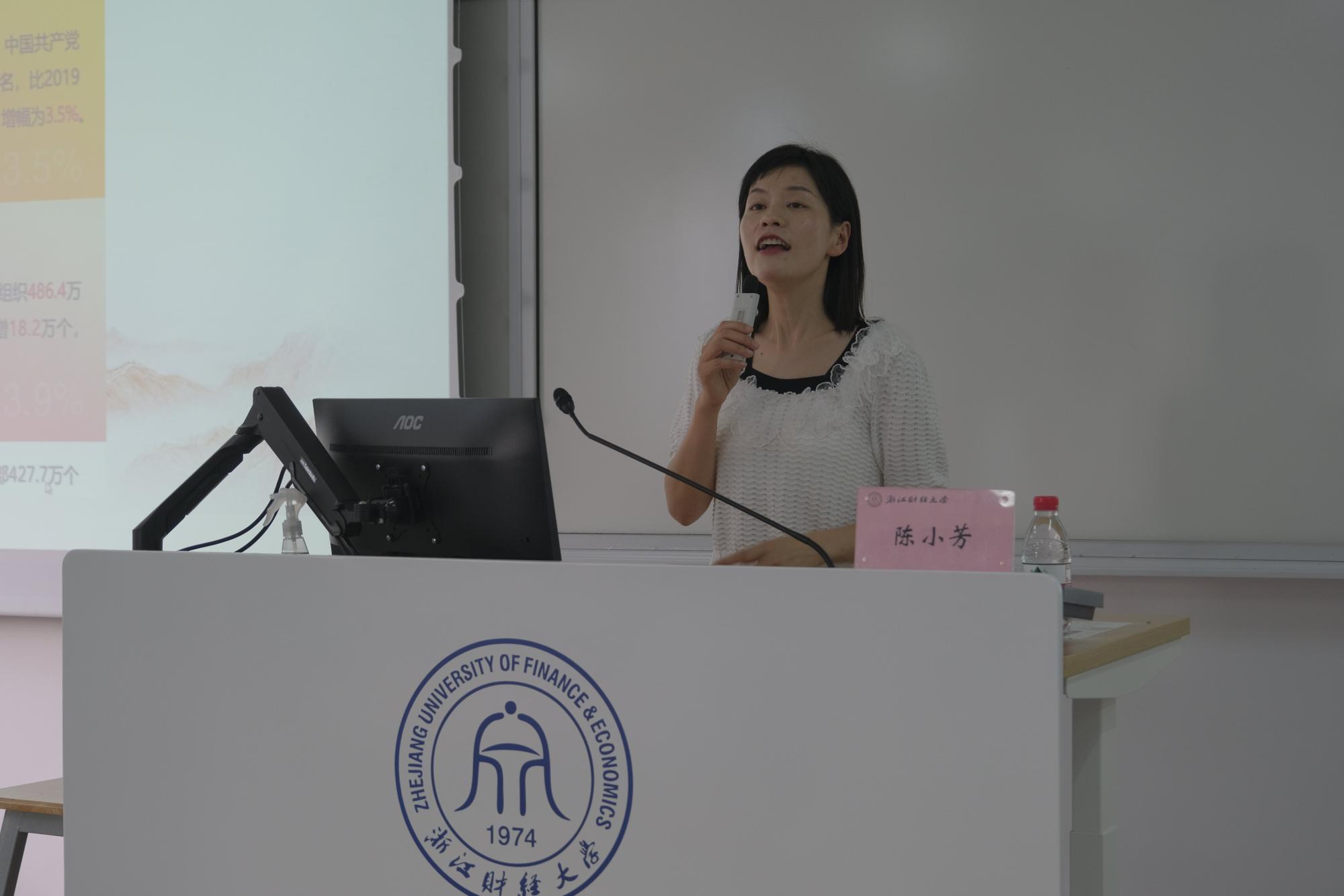 党委副书记陈小芳老师以“青年党员的心理调适与情绪调节”题帮助大学生分析加入中国共产党应该要努力的方向。陈小芳老师指出当今大学生党员存在入党动机功利化、情感认同存在偏差、心理承受能力较差等特点,是社会环境对大学生党员的心理健康的影响、高校培育大学生党员心理健康的模式落后、大学生党员自身存在局限性等多重因素影响下形成的。陈小芳老师指出应该加强社会对大学生党员心理健康的指导作用、加强心理健康教育的师资队伍建设、加强大学生党员的自身心理素质、关心青年党员的心理健康问题。