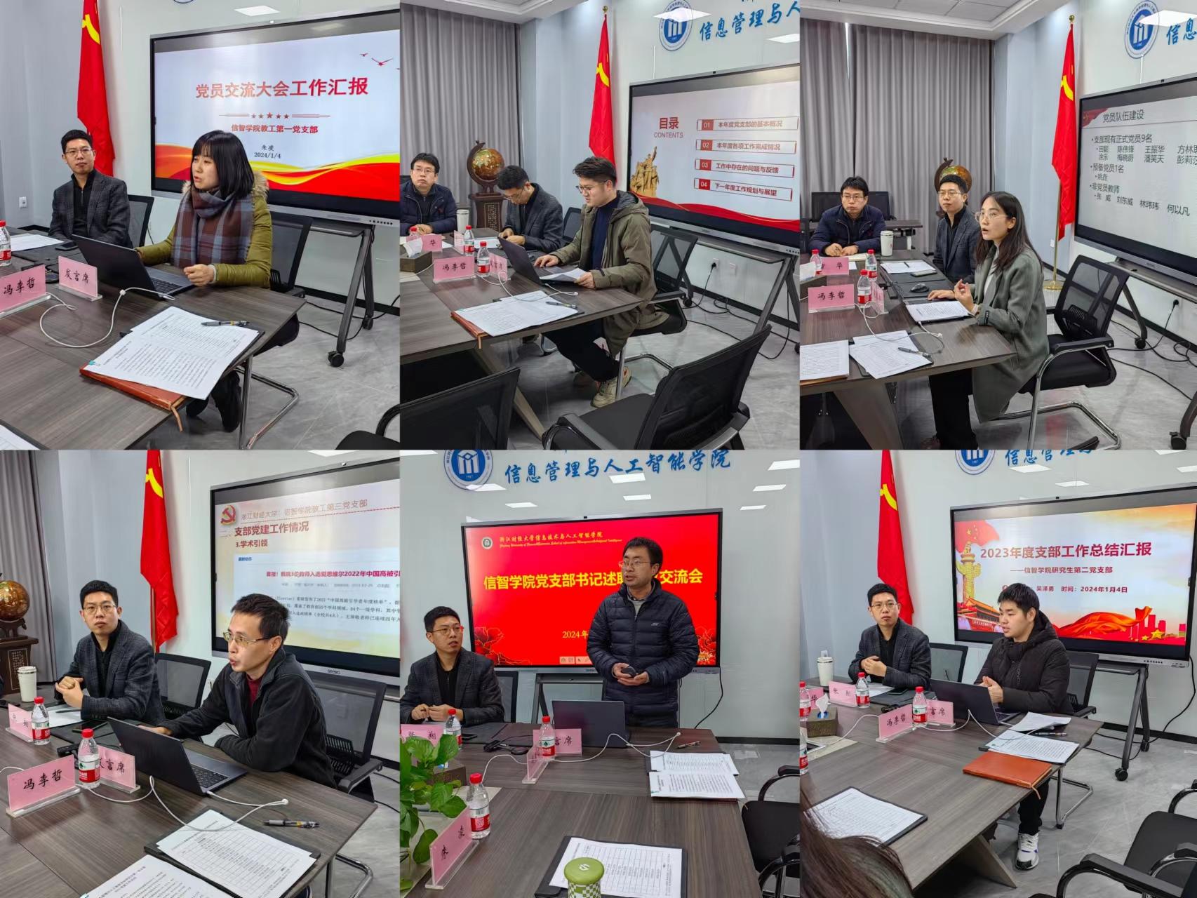 会上,4个教师党支部书记、10个学生党支部书记分别汇报了2023年度党支部工作总结,系统分析了党支部在政治建设、理论学习、业务融合等方面取得的成绩和存在的不足,并对新一年工作做了计划和展望。14个党支部成果丰硕且各有特色,支部书记在述职后还相互做了交流。