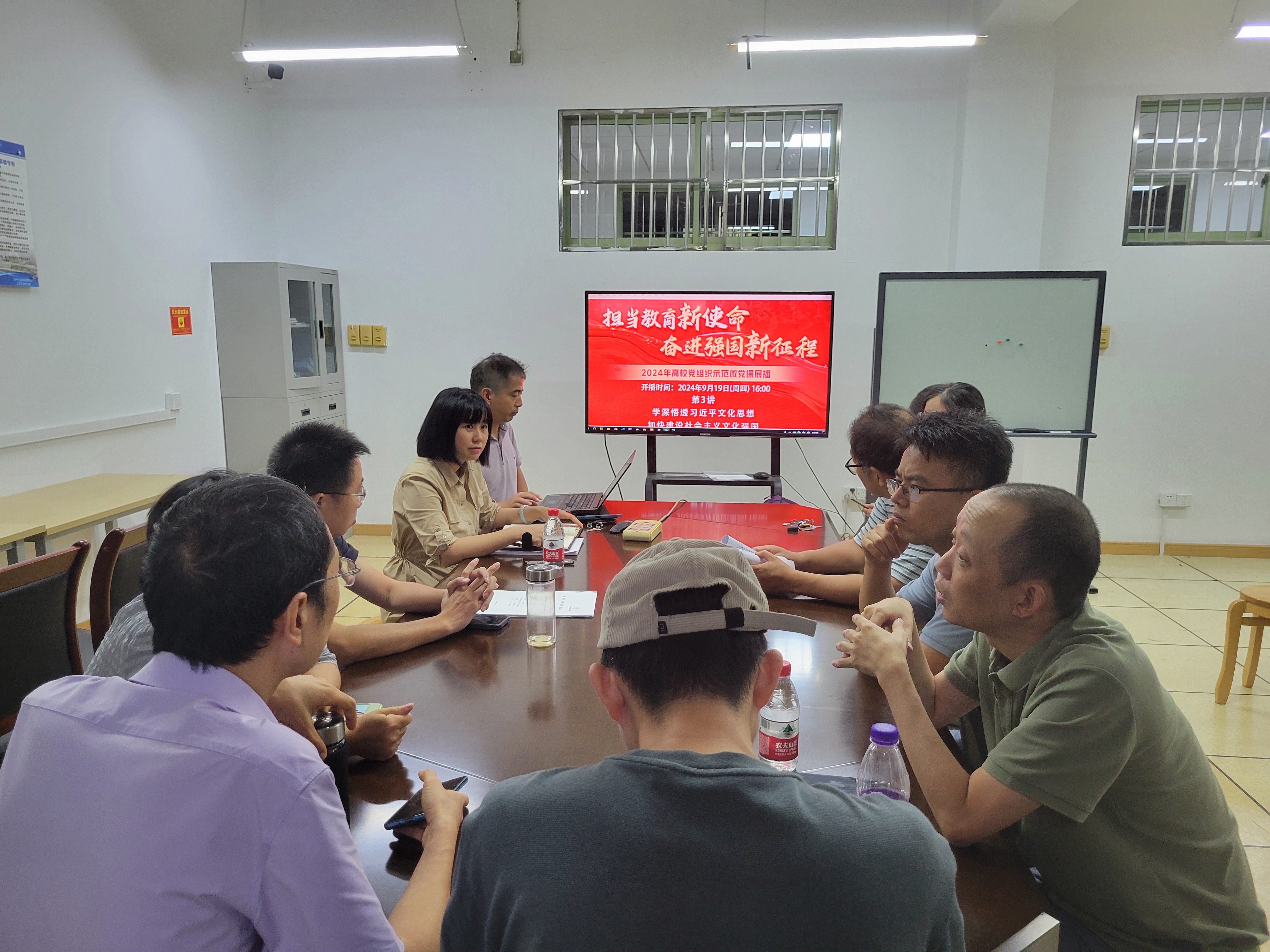 楼103室开展学习2024年高校党组织示范微党课《学深悟透习近平文化思想 加快建设社会主义文化强国》的主题党日活动,此次会议由支部书记朱凌主持,支部全体党员参与。