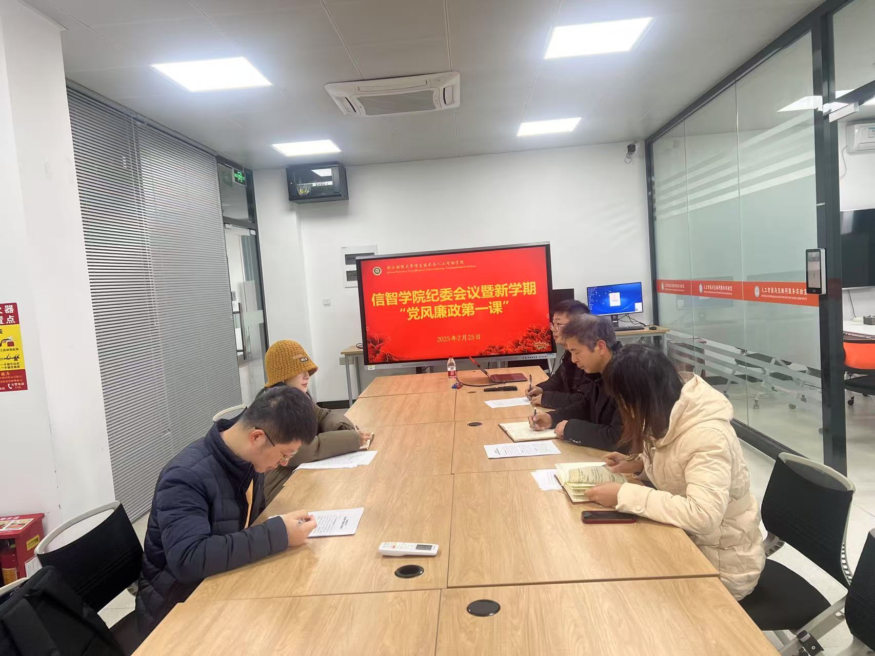 纪委在9301C会议室召开会议,旨在传达“党风廉政第一课”学习要求,并组织签订棋牌 APP