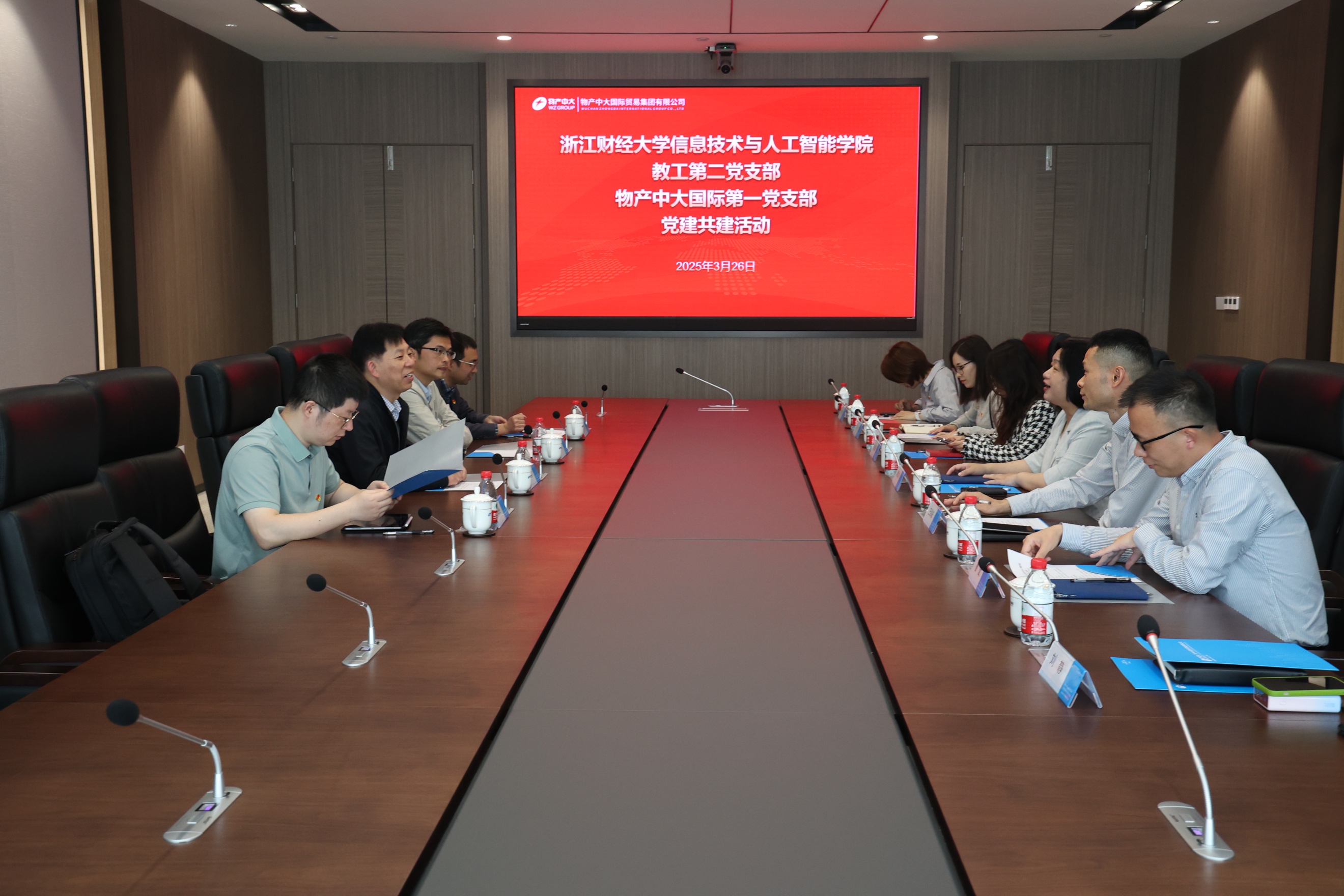 教工第二党支部与物产中大国际第一党支部签订支部共建协议,双方就党建共建、校企合作等方面进行了交流研讨。