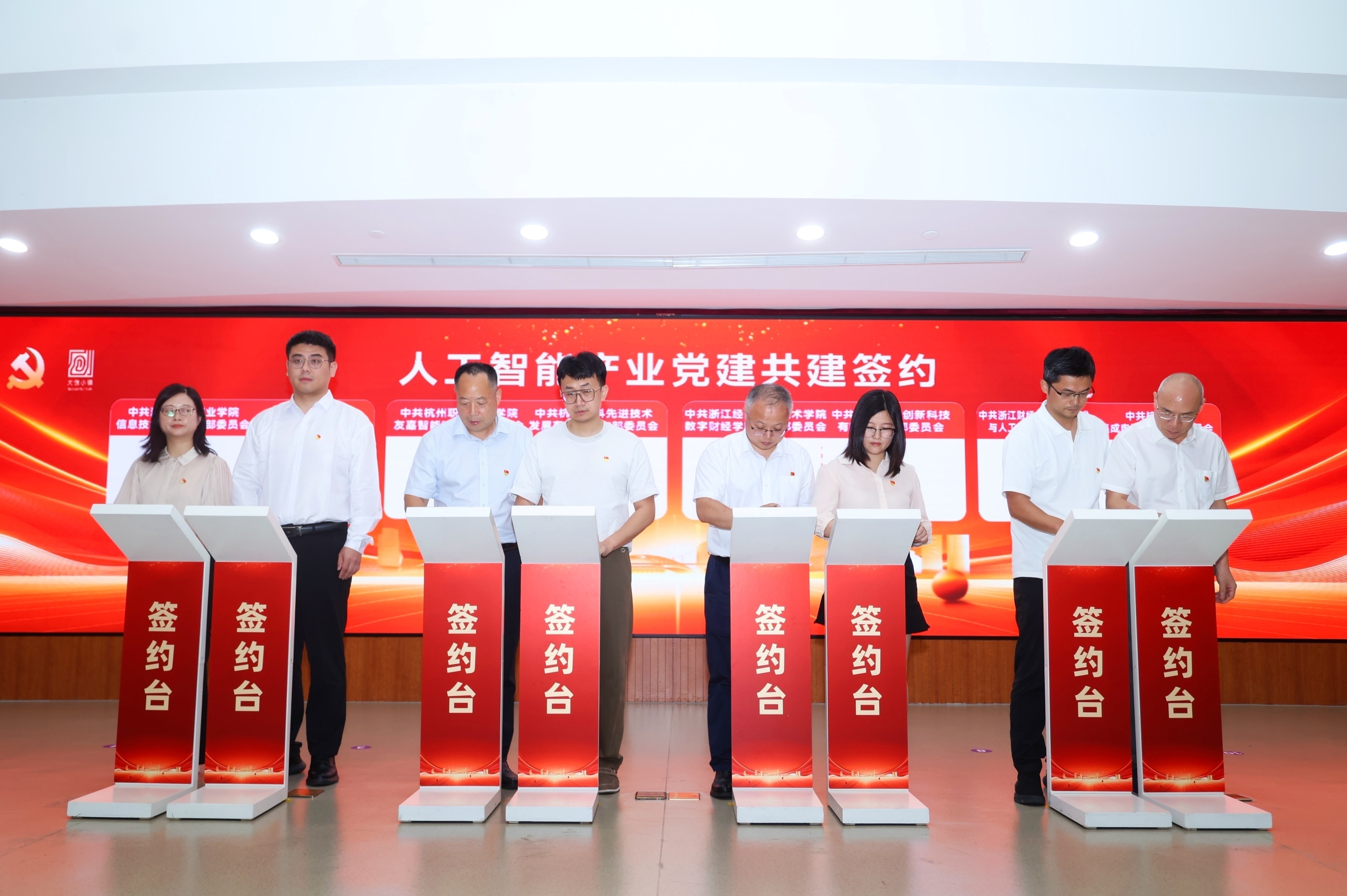 活动中,棋牌 APP 与钱塘区科技型企业签署了人工智能产业党建共建协议,旨在通过校企党建深度融合,进一步推动产学研协同创新与人才培养。