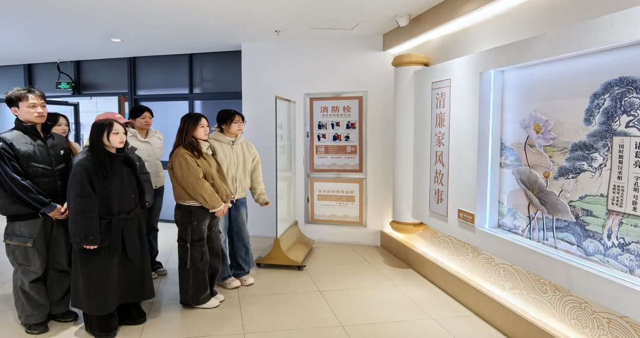在钱塘家风馆内,全体成员在讲解员的细致引导下,依次参观了 “家风溯源”“家风传世”“家风践行” 三大主题展厅。从 “克勤克俭、耕读传家” 的古代先贤治家格言,到 “忠诚报国、廉洁齐家” 的革命先辈红色家风,从 “爱岗敬业、孝老爱亲” 的当代榜样家庭故事,到 “邻里和睦、热心公益” 的身边模范文明事迹,展厅内一张张定格岁月的珍贵老照片、一件件承载时代记忆的实物展品、一段段直击人心的纪实视频,全方位、多角度地展现了家风文化的深厚历史底蕴与鲜明时代价值,让在场师生沉浸式感受家风传承的精神力量。参观过程中,大家不时驻足凝视、交流感悟,在潜移默化中接受了一次深刻的家风教育和党性洗礼。