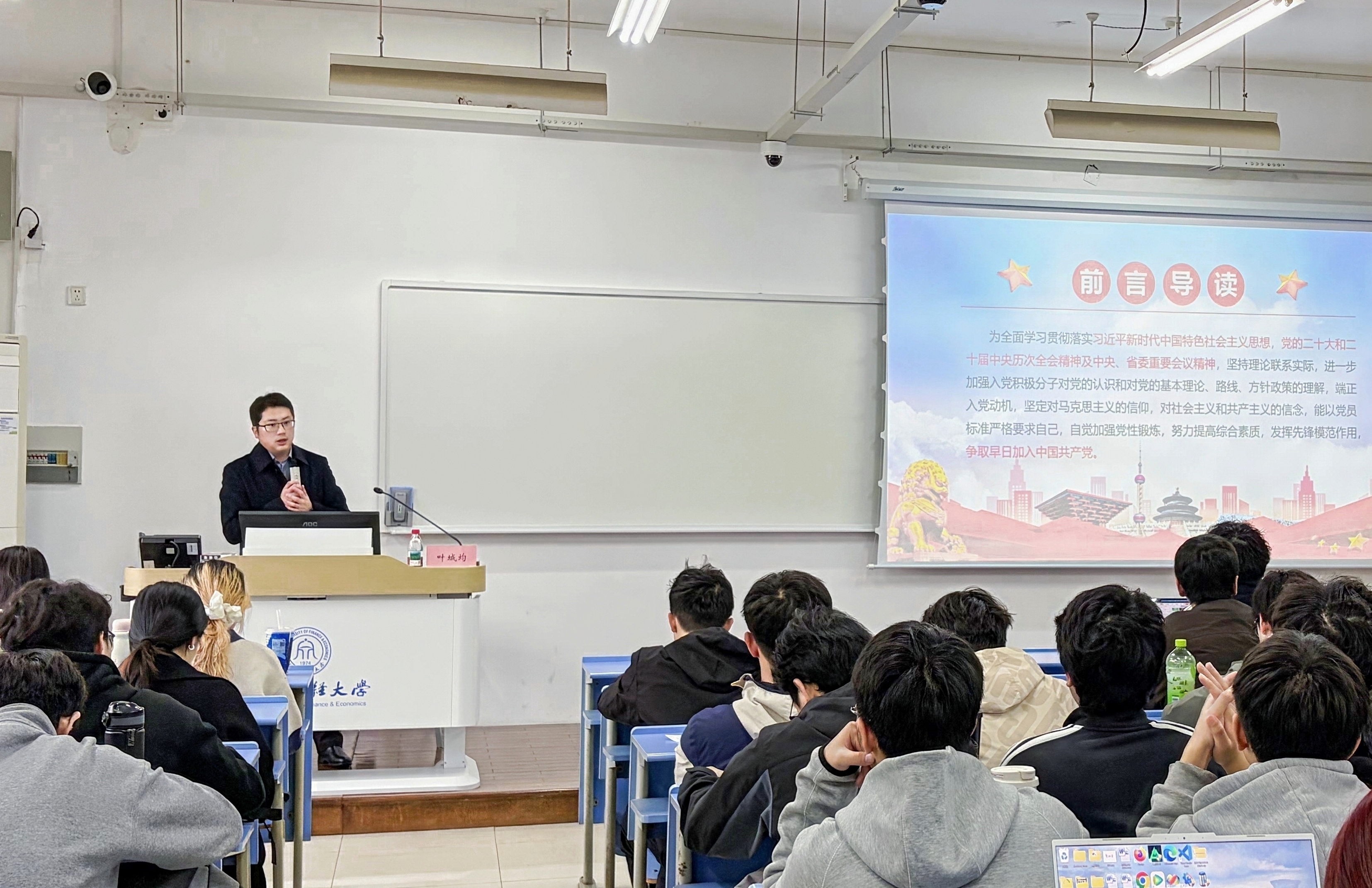 党委副书记、纪委书记叶城均老师以“如何端正入党动机”为题,从党的“三大历史贡献”切入,系统梳理了党在关键历史节点的战略抉择与辉煌历程,并结合浙江作为中国式现代化先行者的生动实践,引导学生深刻认识党的历史地位与时代使命,确立正确的入党动机,以更高标准严格要求自身,在思想淬炼与行动实践中不断成长提升。