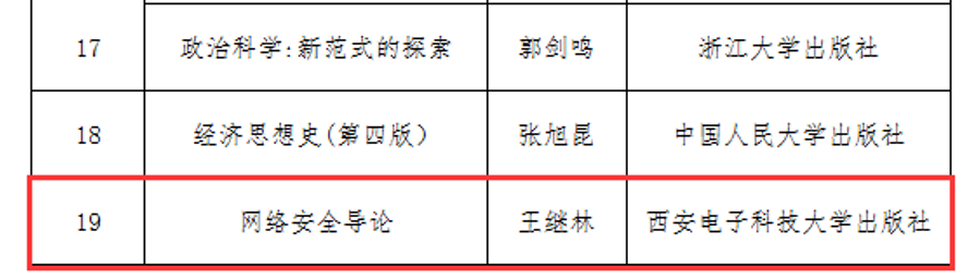 近日,浙江省教育厅发布了《浙江省教育厅办公室关于公布浙江省“十四五”普通高等教育本科规划教材目录的通知》,我院王继林教授主编的《网络安全导论》教材获评“十四五”普通高等教育本科省级规划教材。