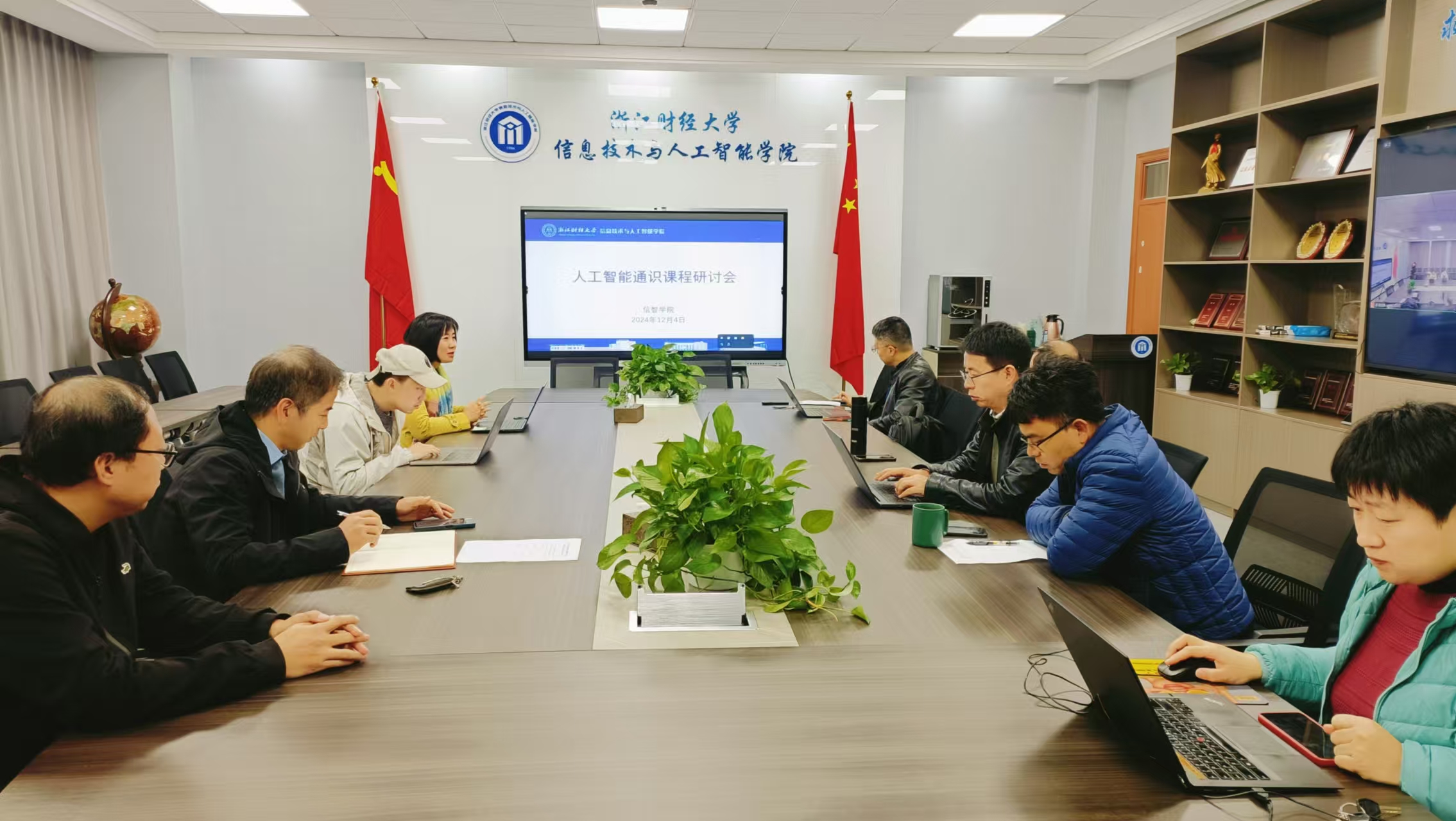 会上,老师们从通识课程面向对象特点出发,积极探讨课程模式和创新举措,大家一致认为,跨学科合作是人工智能通识课建设中非常重要的部分,本课程将以提升学生的实践能力和创新思维为目标,鼓励学生将人工智能技术应用于多个学科领域,以塑造培养“浙财金生”复合型人才。