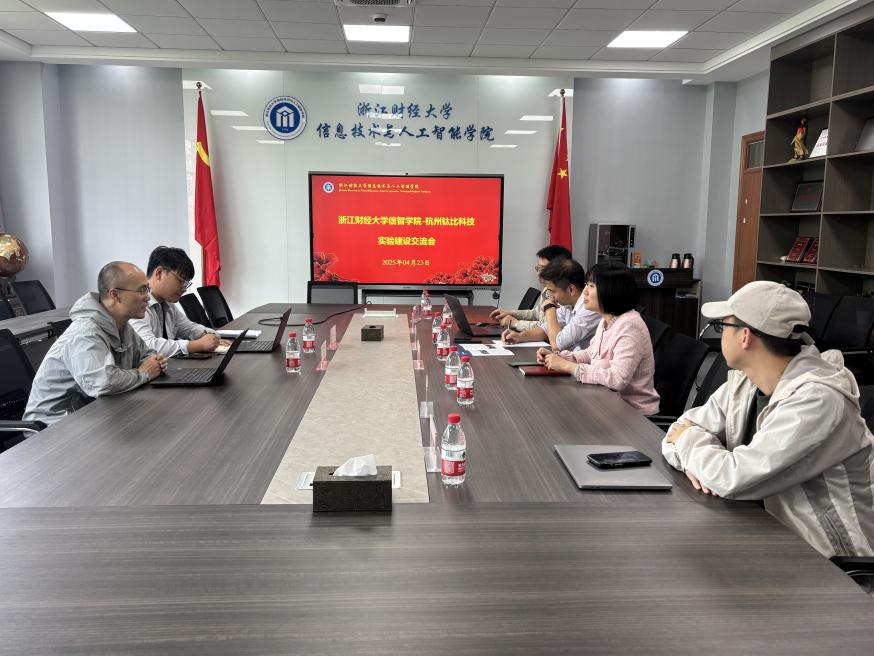 长朱凌、院长助理兼计算机科学与技术系主任陈明晶、实验中心主任章华、人工智能与物联网方向骨干教师张后旗、杨泽参会交流讨论。