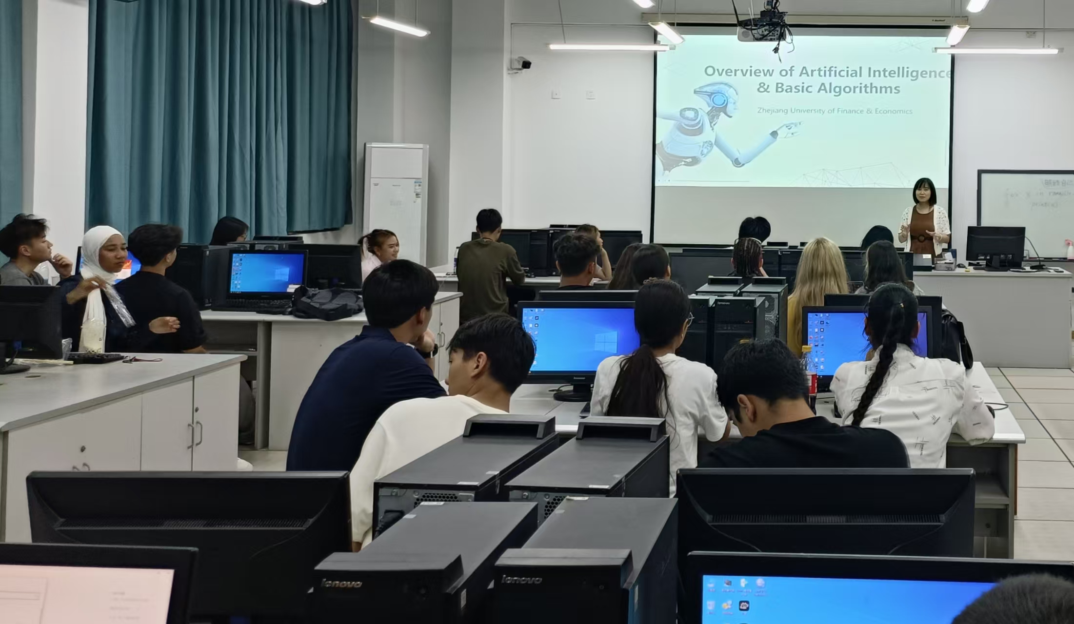 积极响应浙江省高校人工智能通识课程全覆盖与教育国际化的号召,进一步为25级国际留学生新生增设《Introduction to Artificial Intelligence》,并同步建设“浙财学堂”同名线上课程,以线上线下混合式方式开展人工智能国际化通识教育,旨在帮助各国留学生快速融入中国学习环境,探索人工智能在财经领域的深度应用。