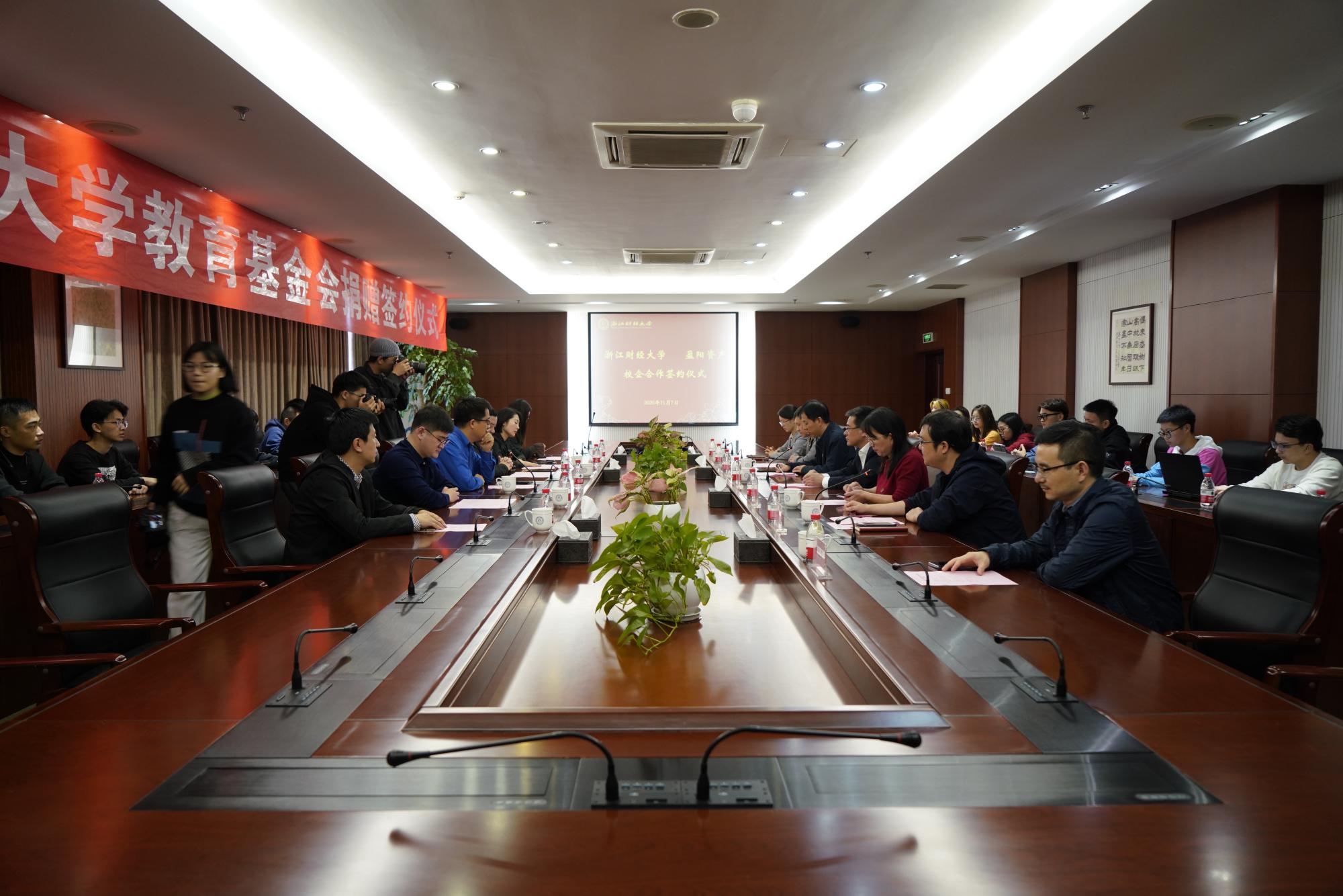 与浙江盈阳资产管理股份有限公司校企合作项目签约仪式在下沙校区举行。盈阳资产创始人楼栋校友、总经理孔繁岗校友、技术总监赵海滨,棋牌 APP