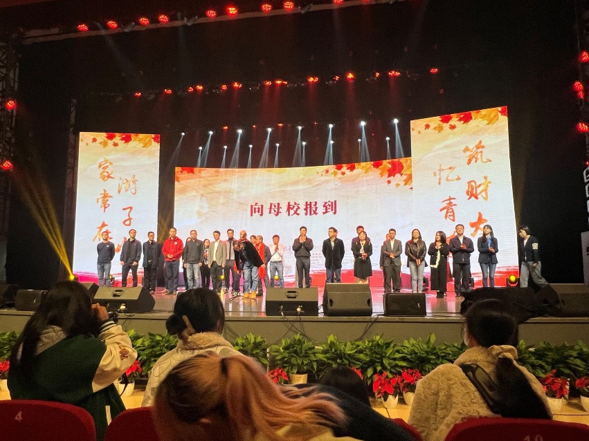2022秩年返校纪念大会暨学业成礼仪式在普华大剧院举行,1996届信息班、杭州聚恒投资有限公司董事长陈三春校友获评校第九届最美校友,退休教师冯睿老师接受校友代表2002届信息班杨立金校友献花,各返校班级纷纷登台向母校报告。校友们于四海奔赴,忆往昔青葱岁月。秋风瑟瑟,浙财的怀抱却无比温暖。