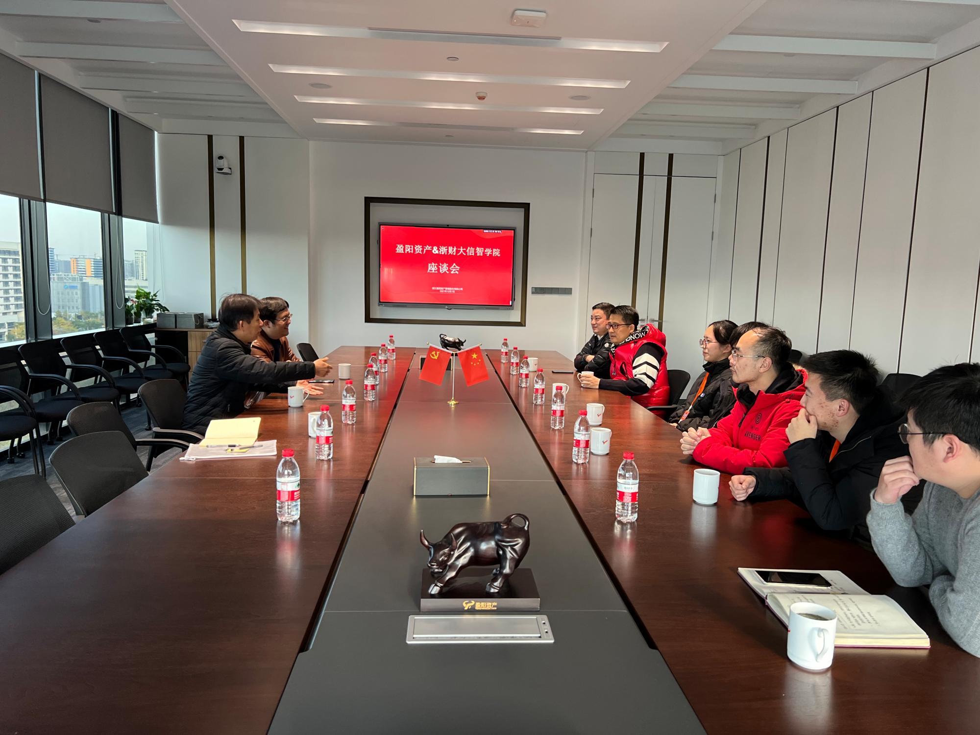 院长张帅、党委书记徐奇伟一行三人前往浙江盈阳资产管理股份有限公司走访盈阳资产创始人楼栋校友、总经理孔繁岗校友并看望在公司基地实习的棋牌 APP