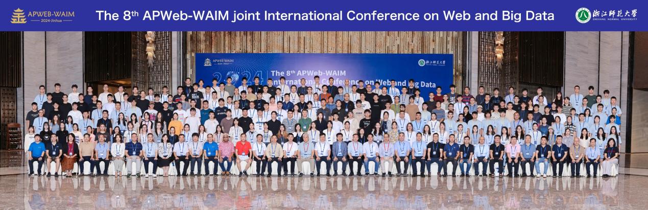 8月30日至9月1日,第8届APWeb-WAIM联合国际会议在金华召开,来自世界各地近百所高校和科研院所的200余名专家学者参加了本次会议。棋牌 APP 张志强教授和2024级研究生江金迅应邀参加了大会。