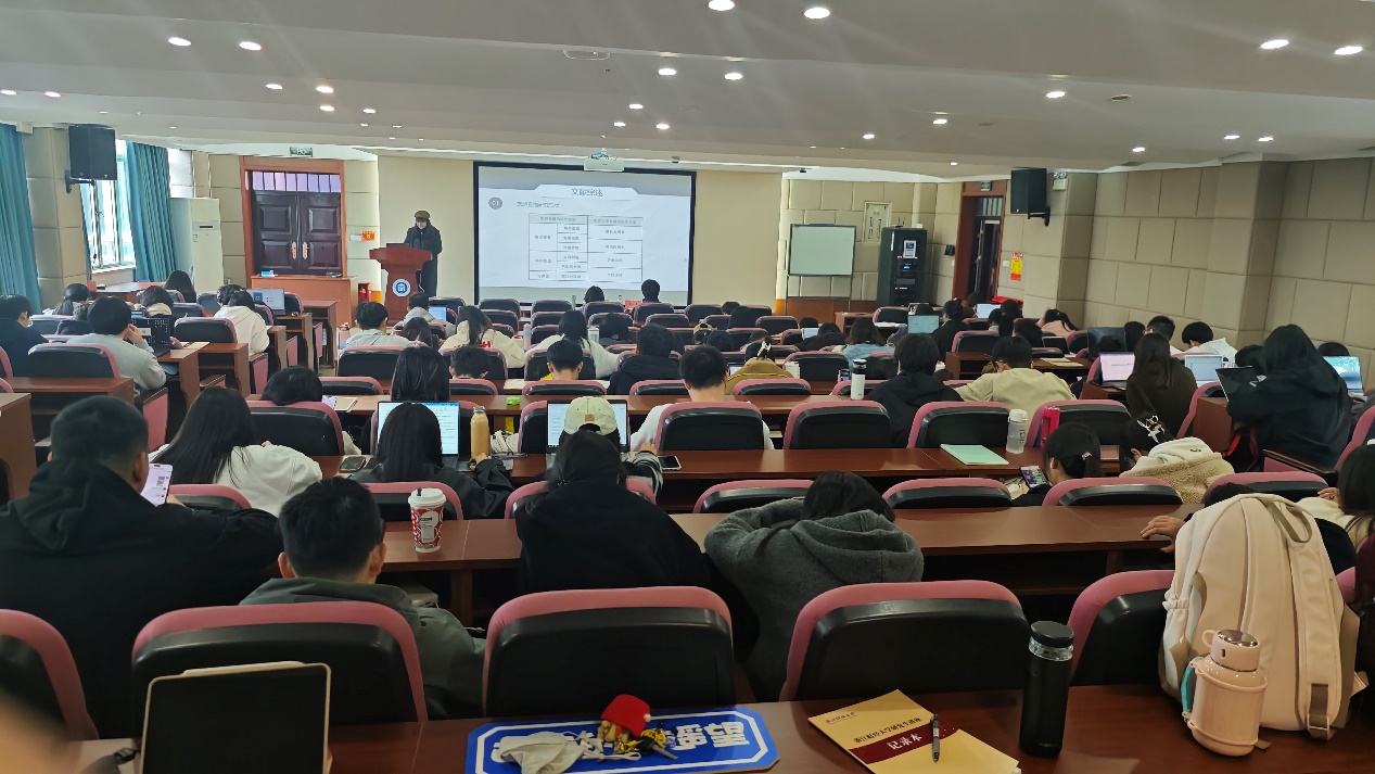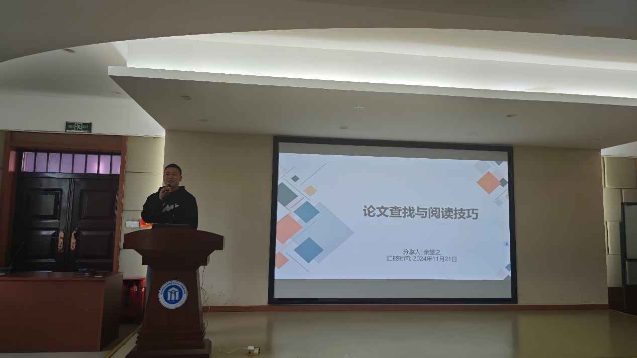 5名研究生主讲,邀请了严素蓉教授、张城博士做点评专家,近百名研究生参加,24级电子信息专业研究生张雨琪主持。主讲内容涵盖了用于交通预测的动态时空多特征模式融合、考虑社交网络环境中冲突行为的基于Z数的大规模群体决策方法、论文查找与阅读技巧等热门话题。