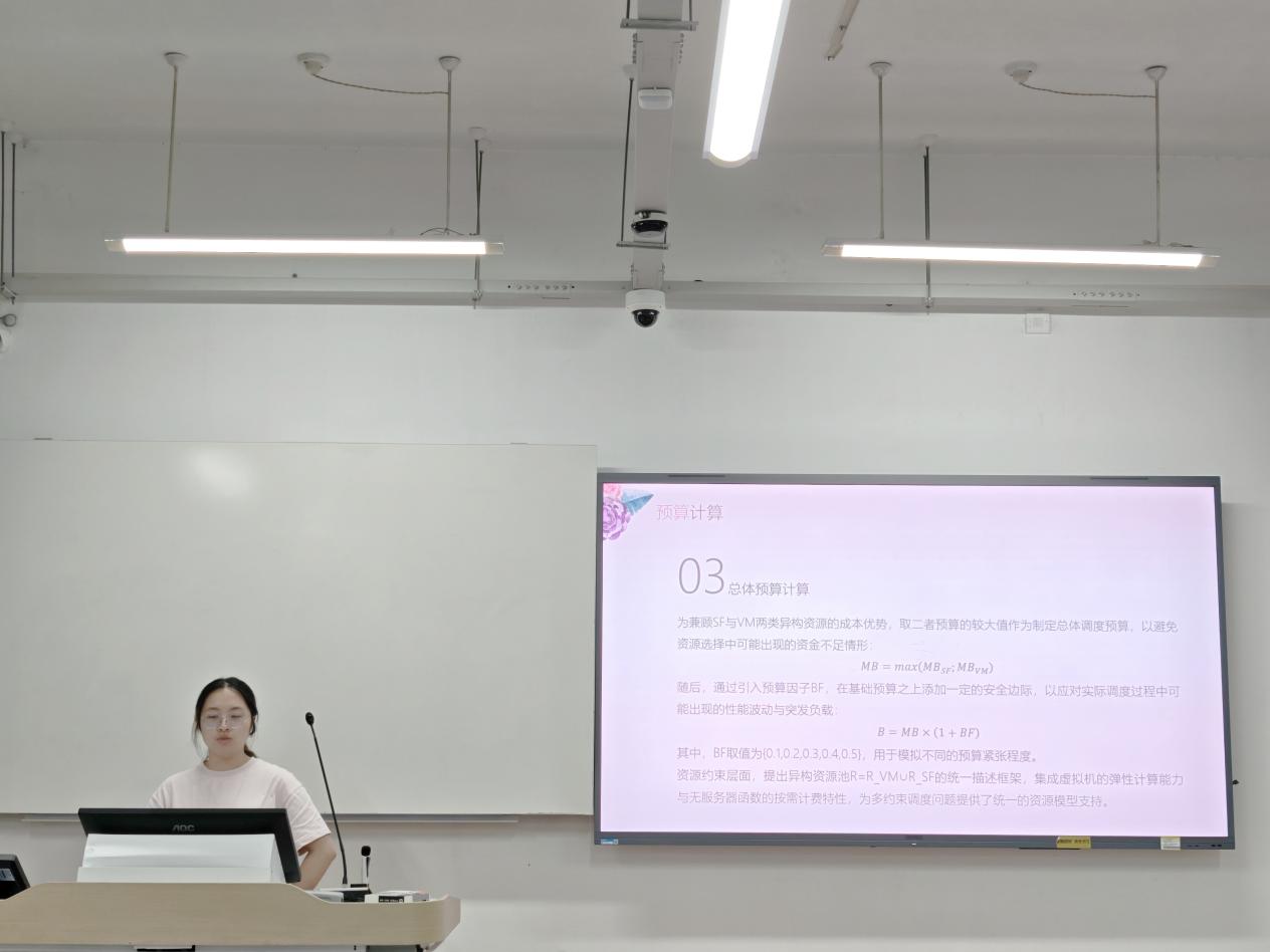 章诗妤同学围绕《基于强化学习超启发式算法的混合异构云工作流调度研究》,展示了其设计的PRL-SHH框架与B-CPAS策略,在预算约束下显著提升了云工作流的调度效率。