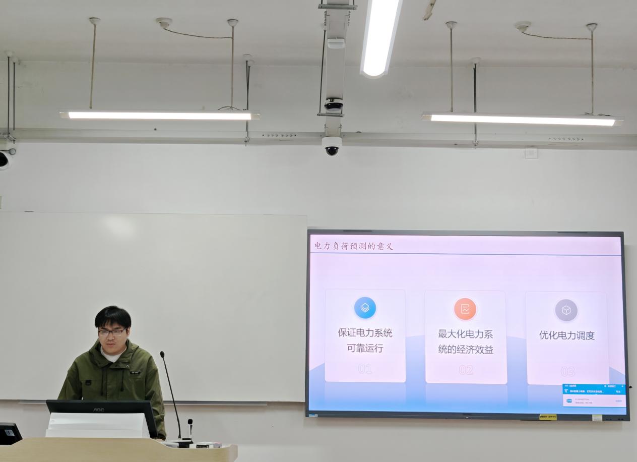 俞艺东同学汇报了《基于注意力STL和多任务GCN的短期电力负荷预测模型》,通过引入注意力机制与多任务图卷积网络,有效提升了负荷预测的精度与鲁棒性。