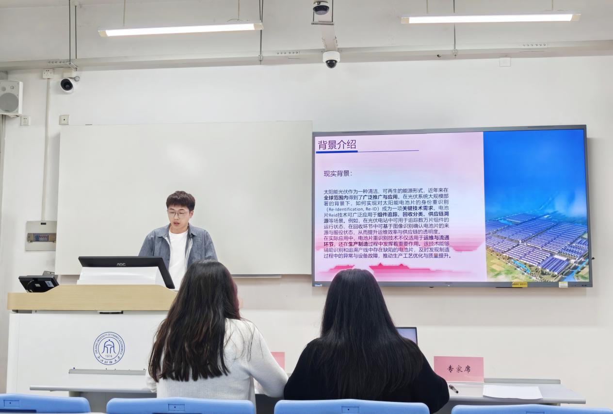 尹晨浩同学以《融合全局与缺陷区域特征的太阳能电池片身份重识别模型》为题,提出FDG-ReID模型,在复杂环境下实现了电池片的高精度识别与追踪。
