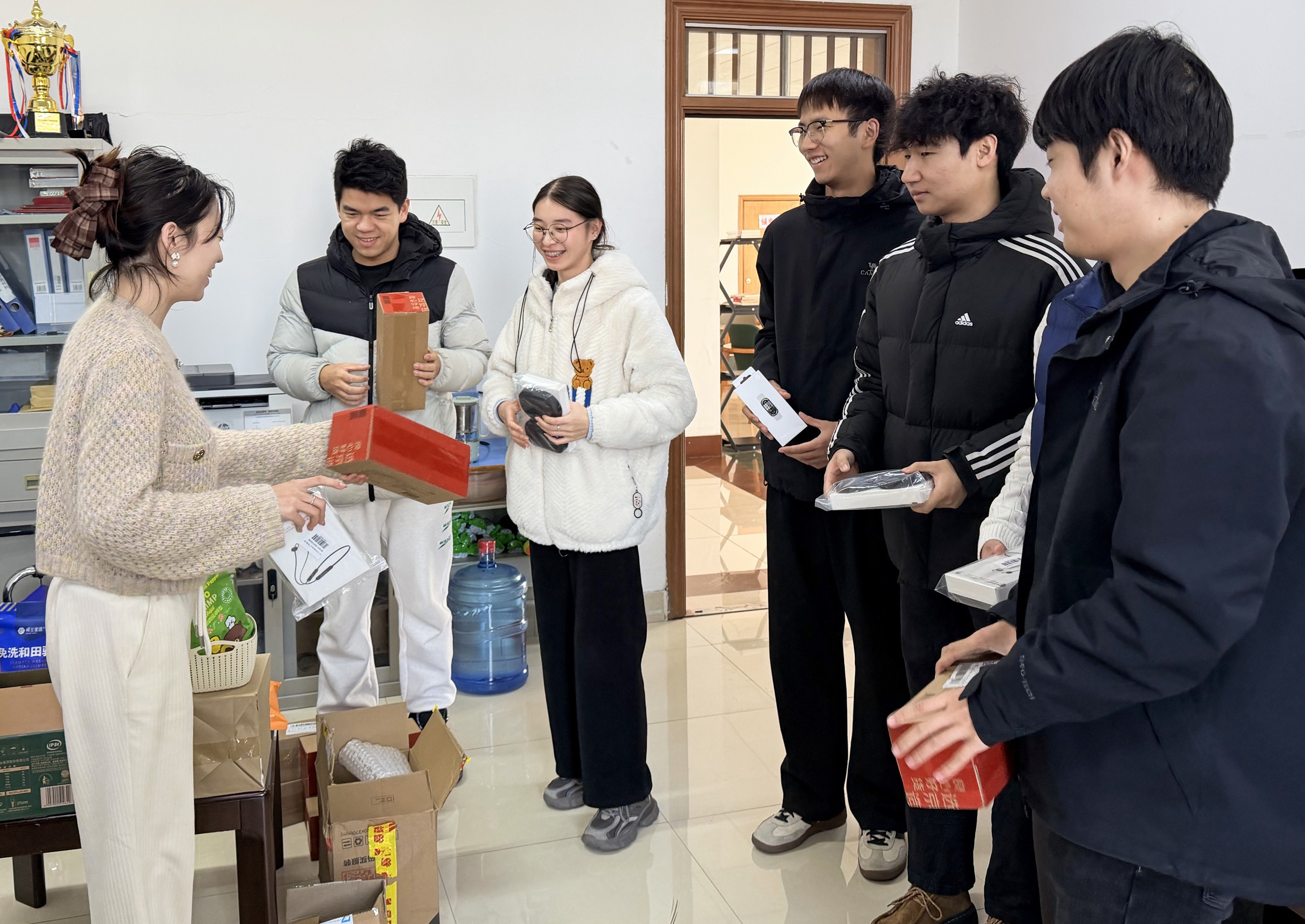 为参赛获奖学生发放奖品。